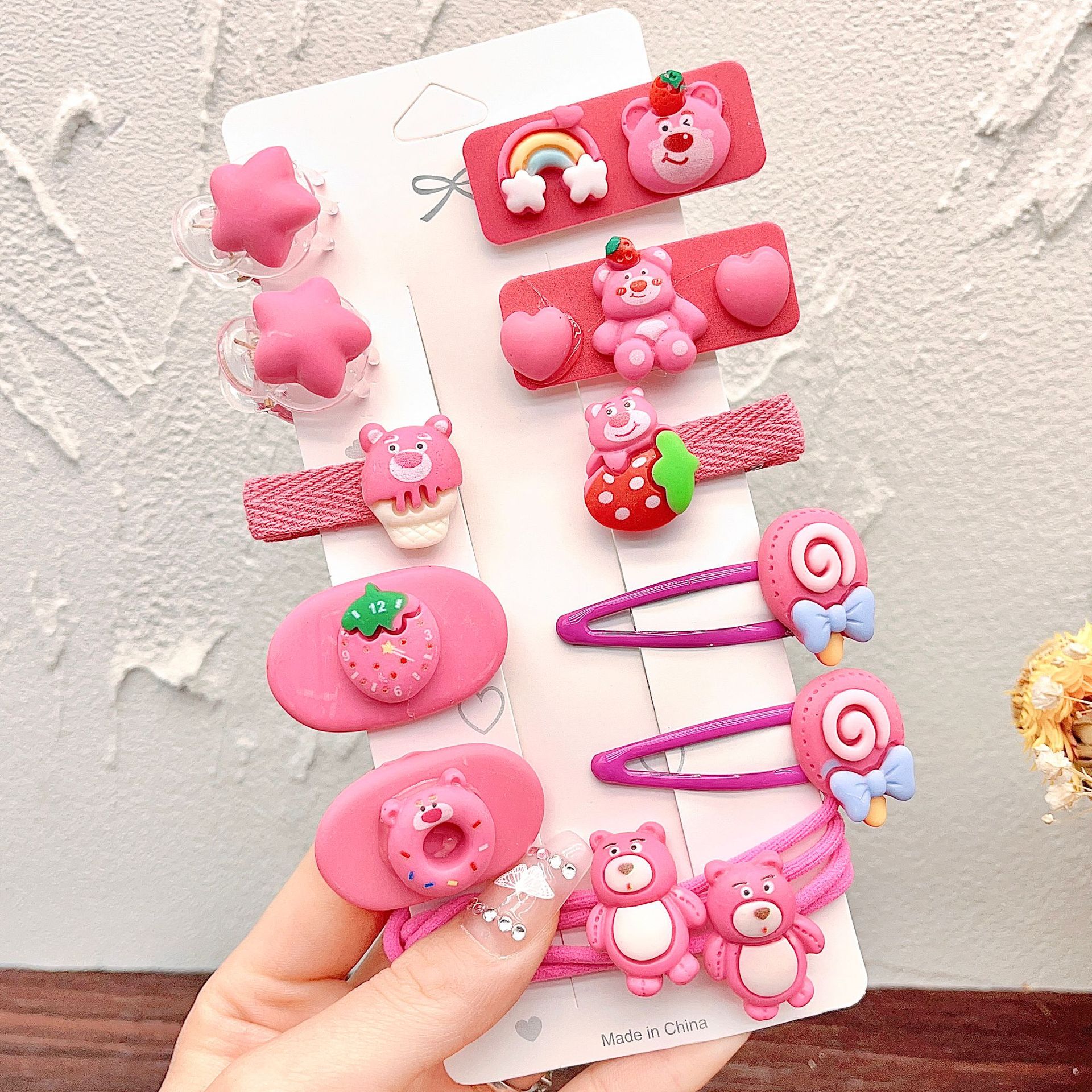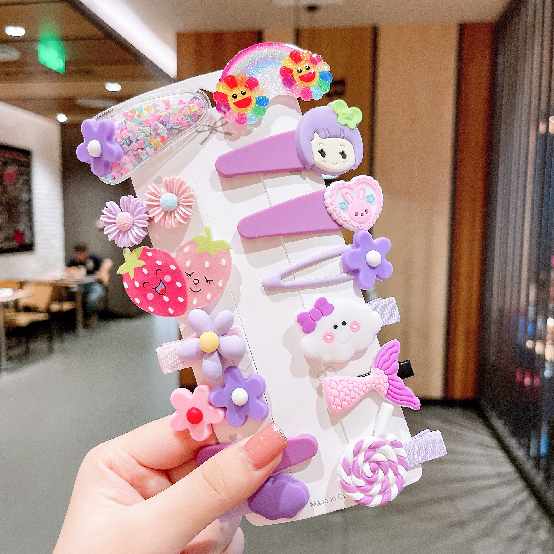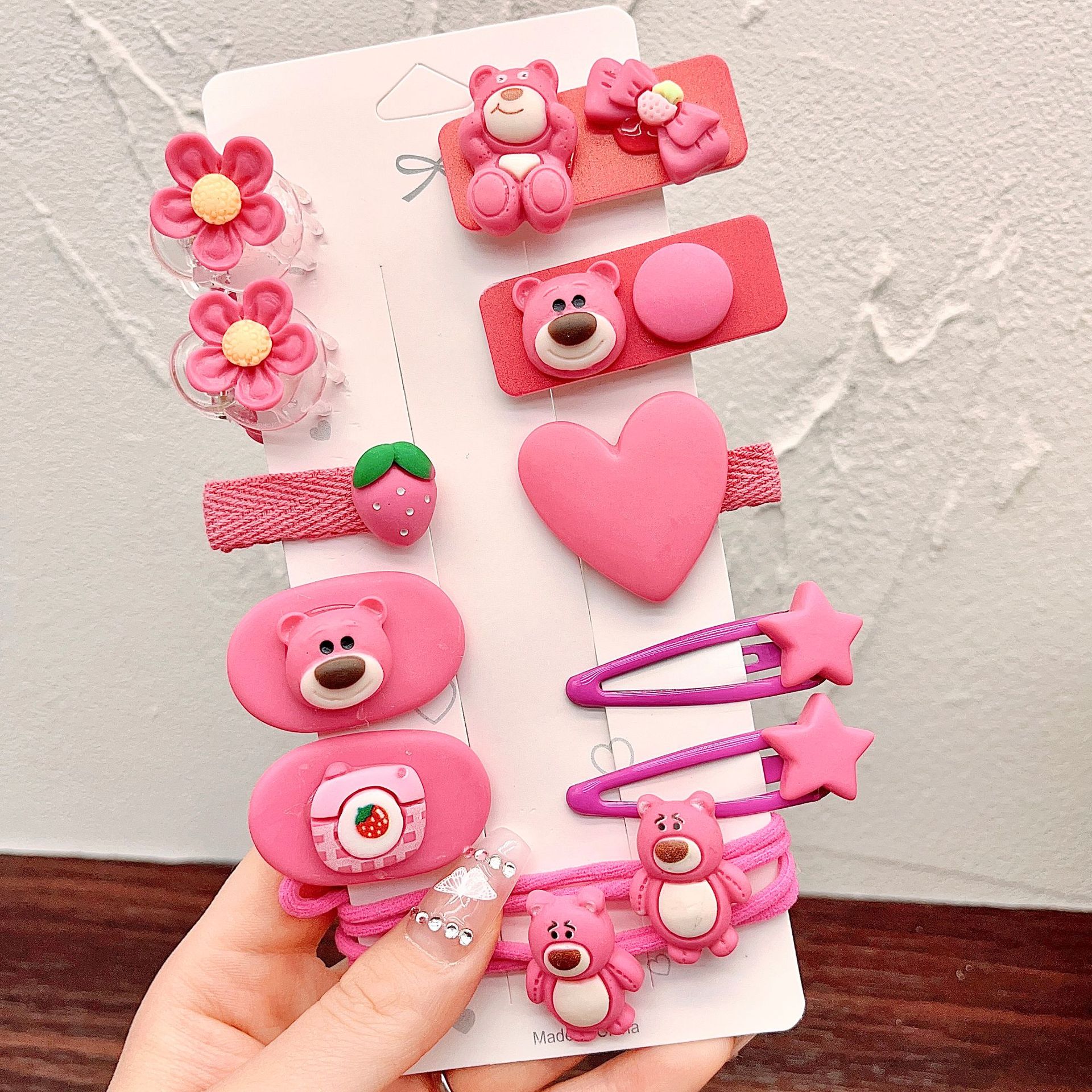 • 28#보라색 딸기 머리핀 14개 세트(가방에 포장)