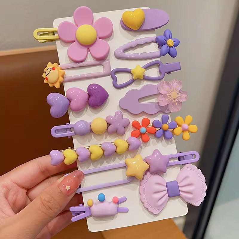 • 6 # 보라색 나비 머리핀 14 개 세트 (가방)