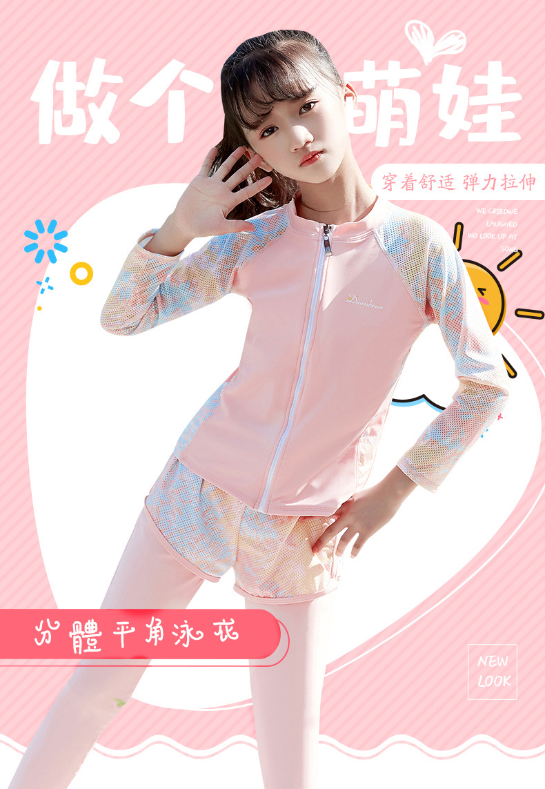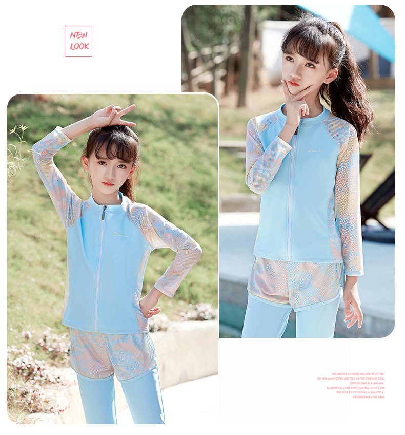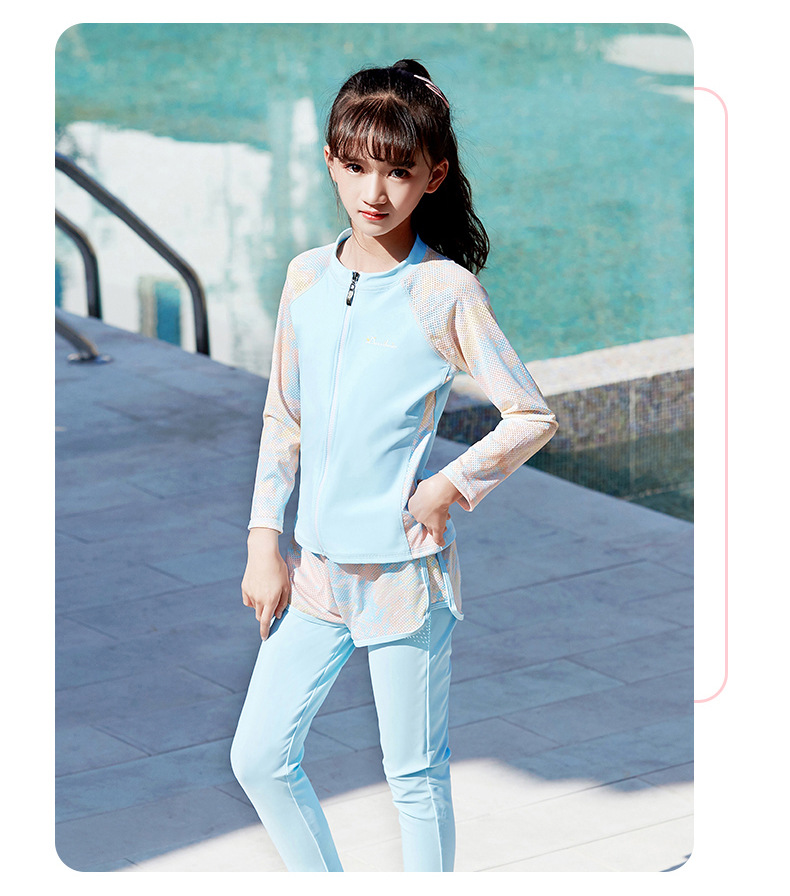긴팔 보수적인 아동 수영복 도매, 중대형 아동용 자외선 차단 속건 여아 수영복, 온천 휴가용 분리형 수영복스토어 가기