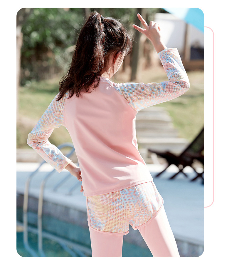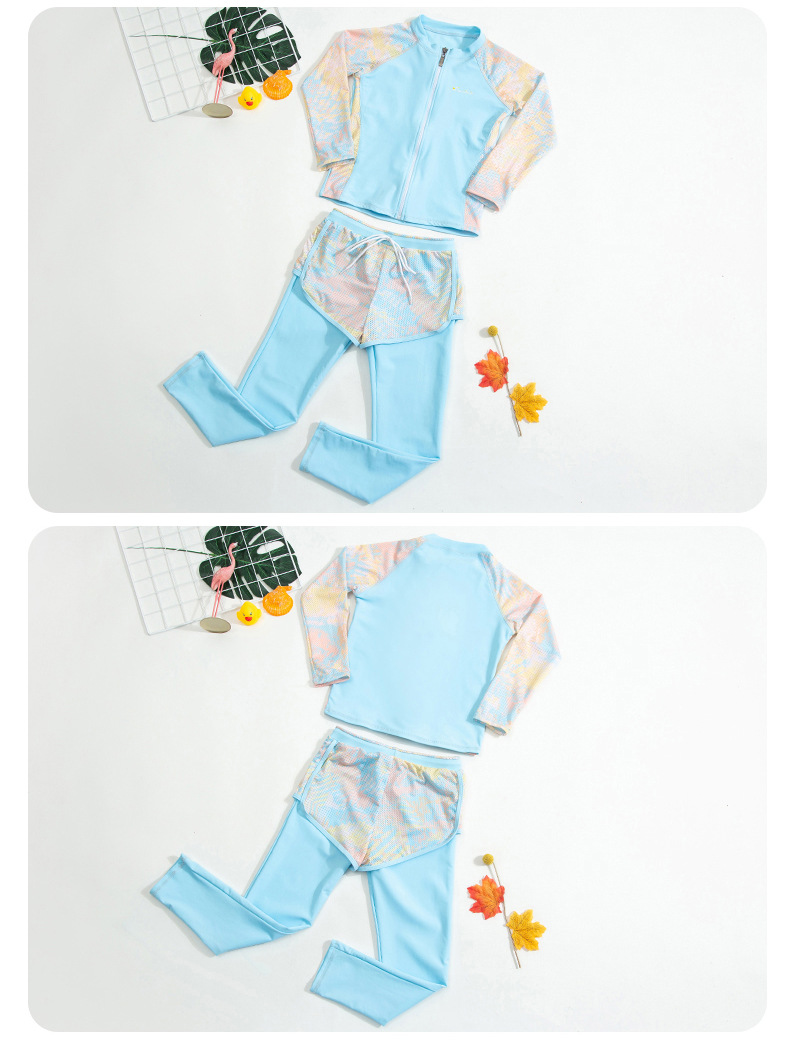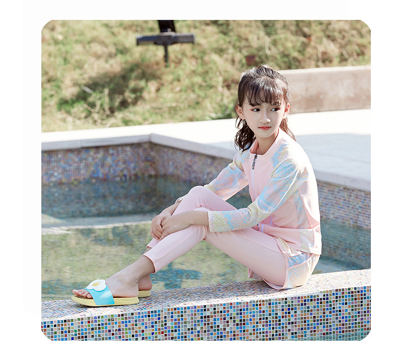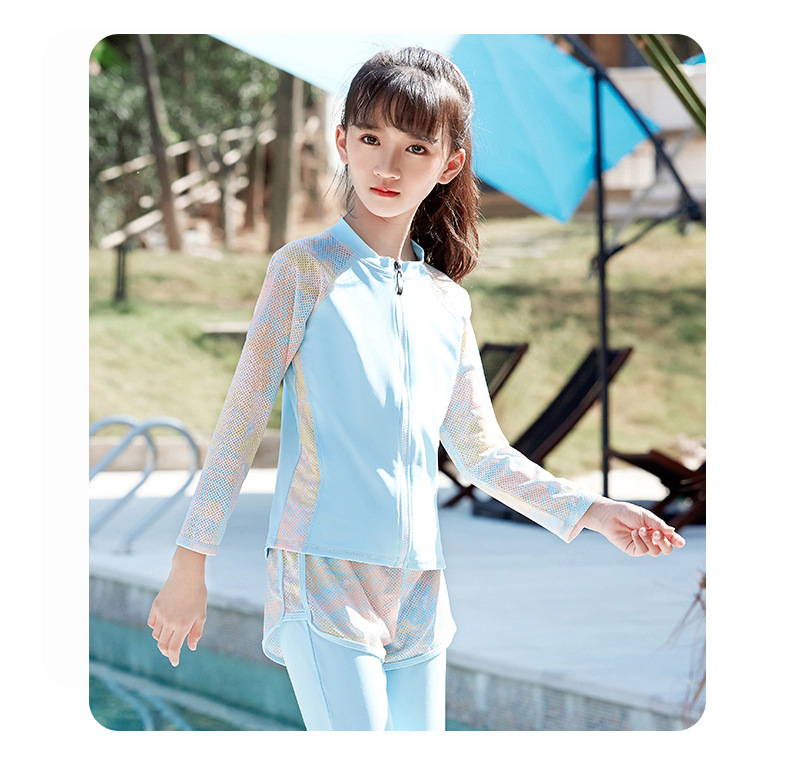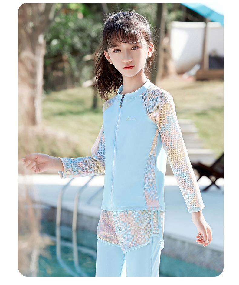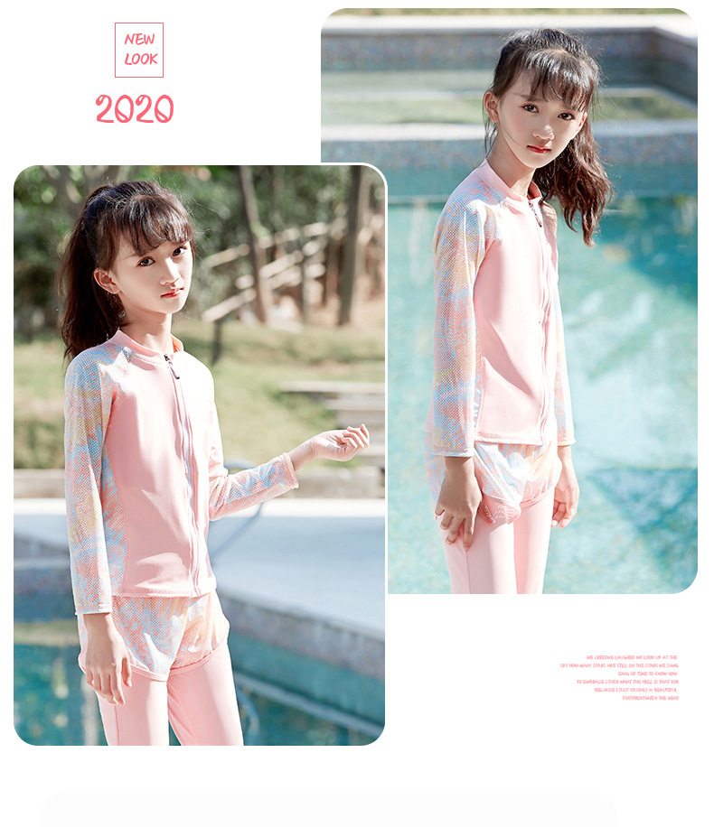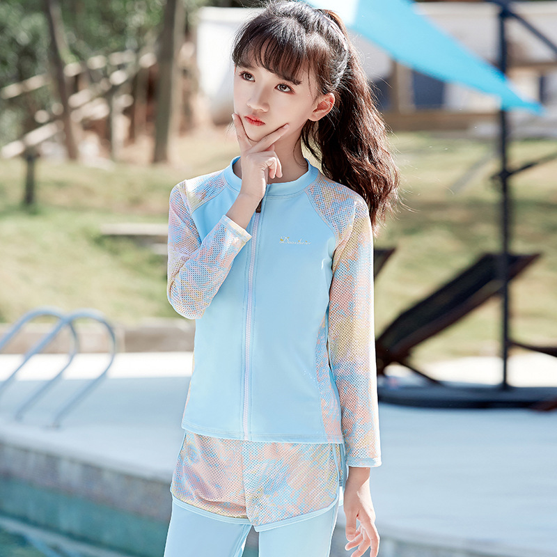 긴팔 보수적인 아동 수영복 도매, 중대형 아동용 자외선 차단 속건 여아 수영복, 온천 휴가용 분리형 수영복