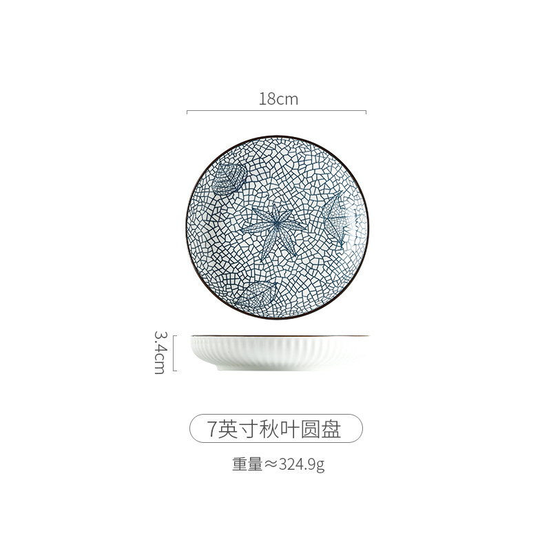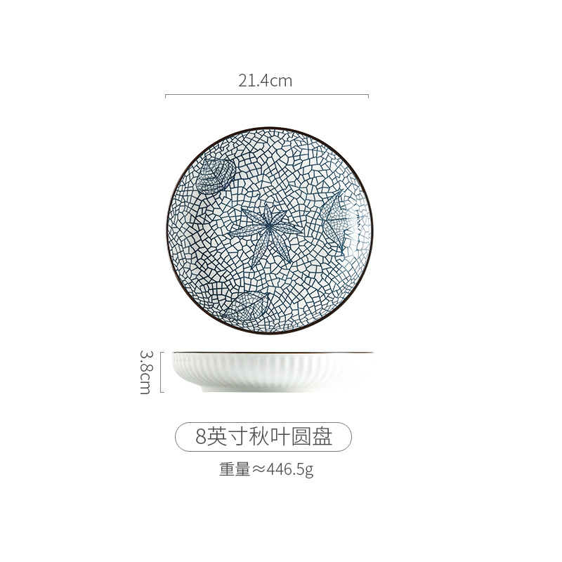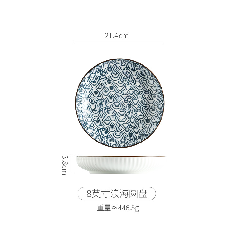 도자기 접시 가정용 7/ 8inch 깊은 접시 유약 밑 색상 세로 줄무늬 요리 접시 밥 접시 식기 접시 그릇 유약 밑 색상 공예스토어 가기