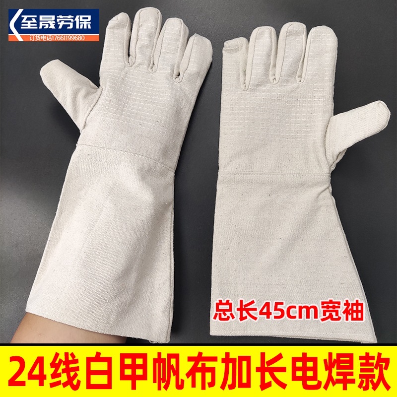 공장 도매 용접 특수 긴 소매 40cm 폭 소매 흰색 갑옷 24 줄 이중 줄 캔버스 장갑스토어 가기