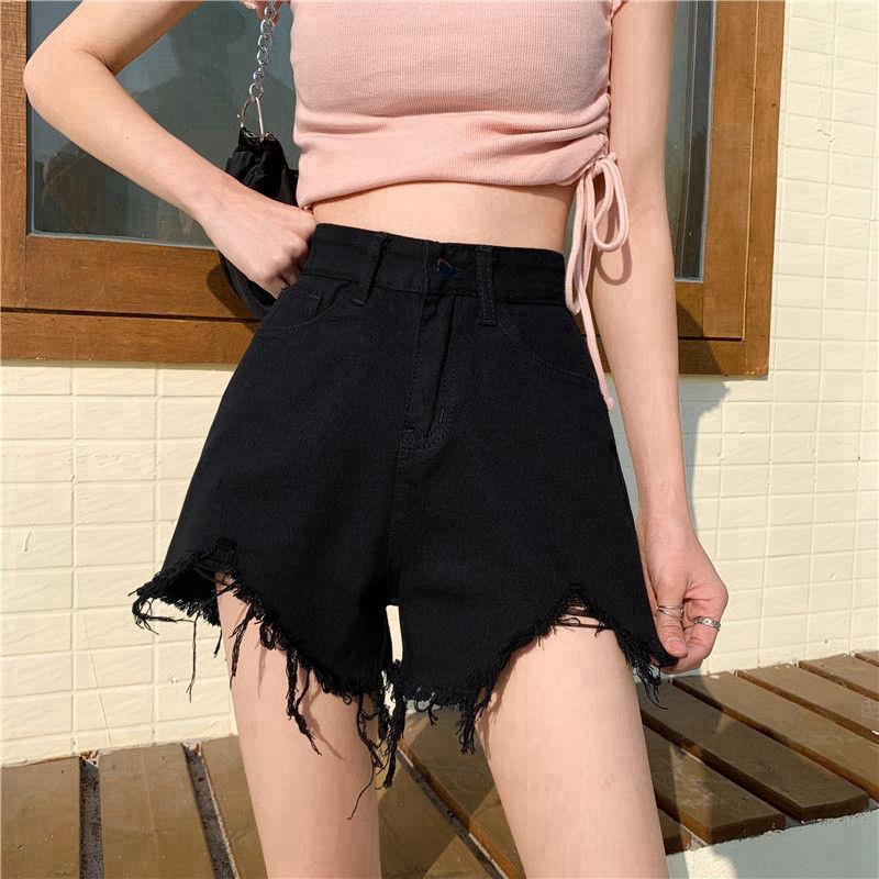 In 화이트 데님 반바지 여성의 여름 2021 신상품 하이 웨이스트 찢어진 슬리밍 인터넷 연예인 a 자형 느슨한 와이드 레그 핫 팬츠 트렌디스토어 가기