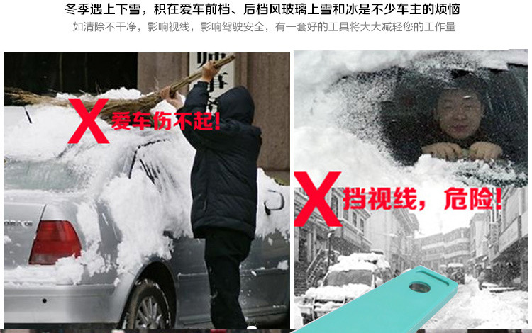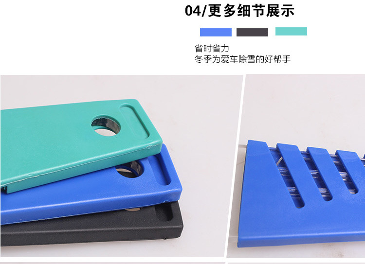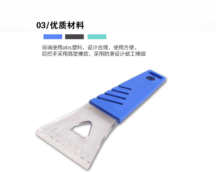 2、设计合理,整个雪铲的设计符合力学原理,不用费力就能把落在汽车玻璃上的积雪和冰霜铲掉。铲头材料的选用合理,软硬适中,不会在玻璃上留下划痕。
