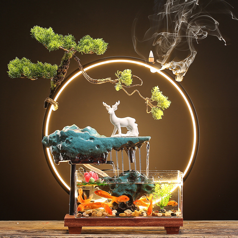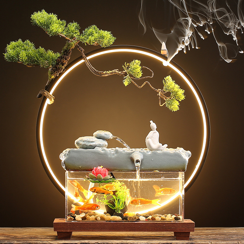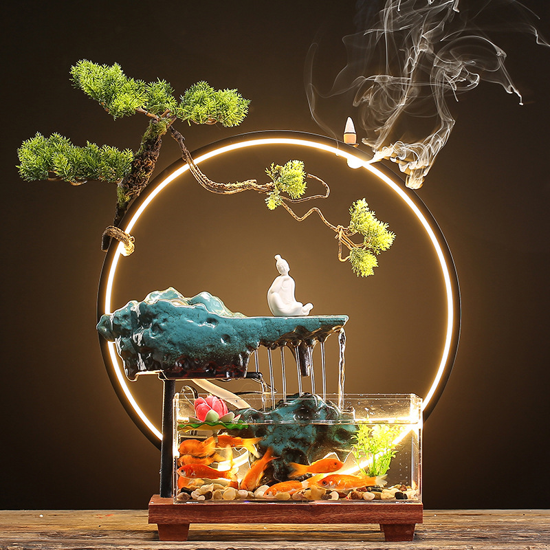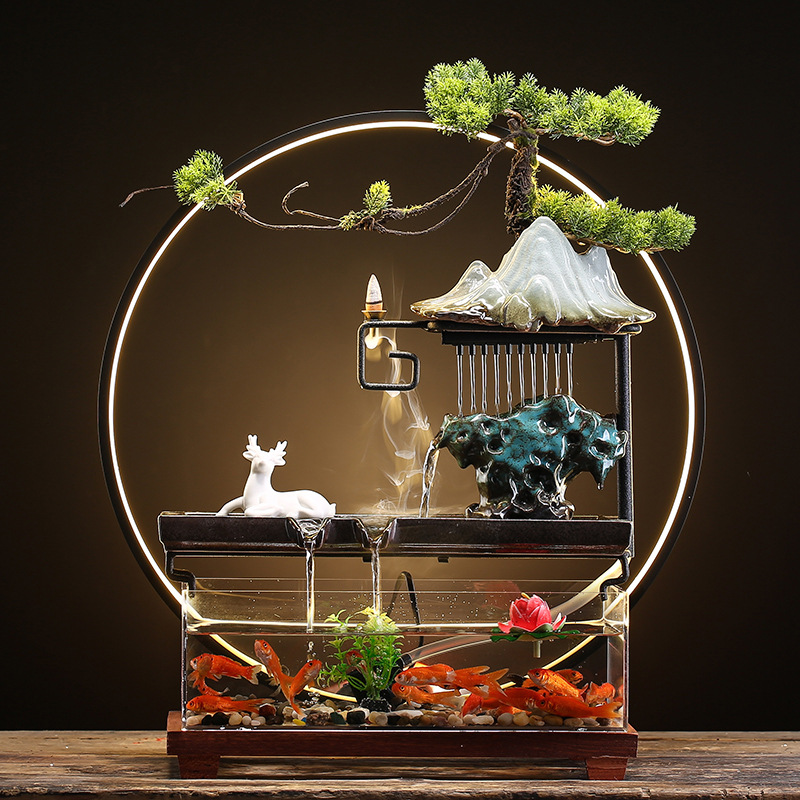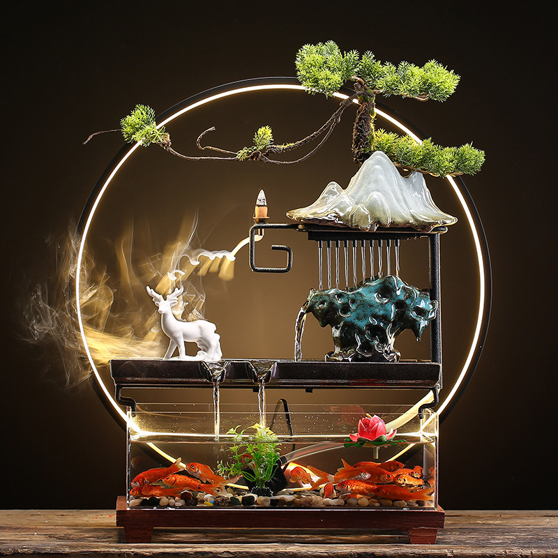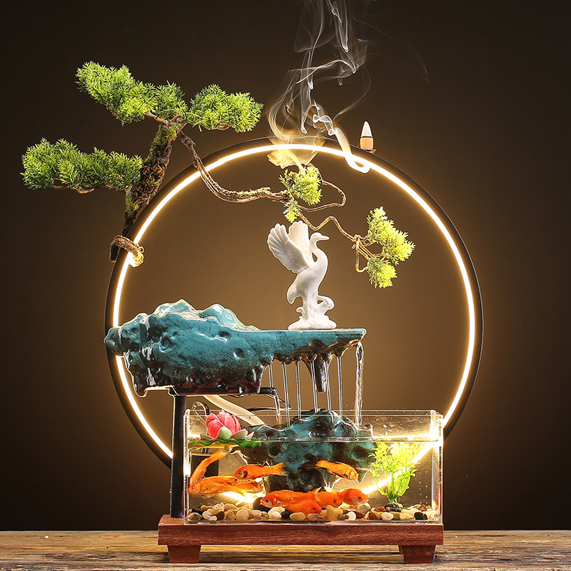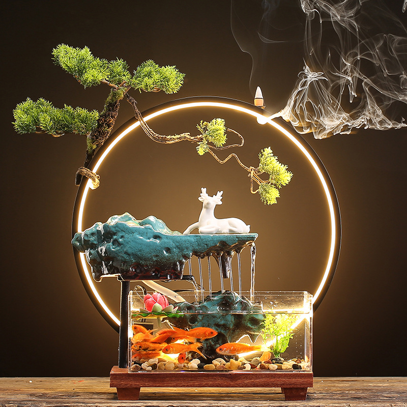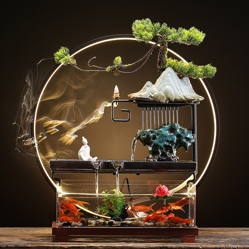 창조적 인 rockery 세라믹 순환 물 디스펜서 어항 풍경 사무실 데스크탑 장식 거실 오프닝 선물