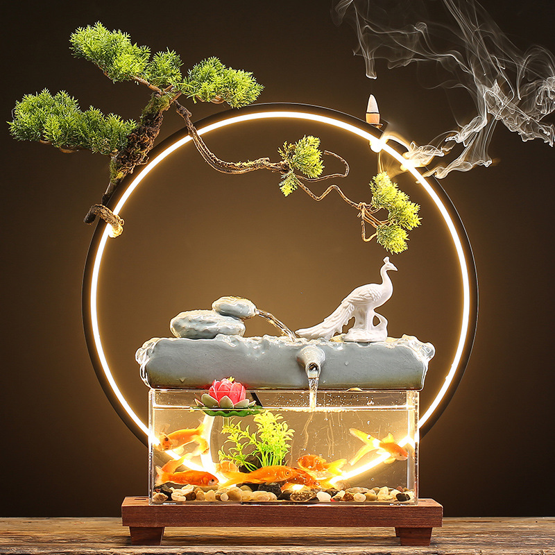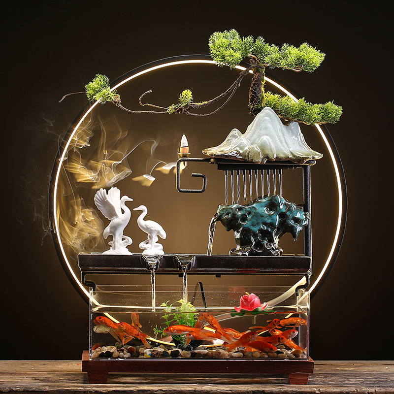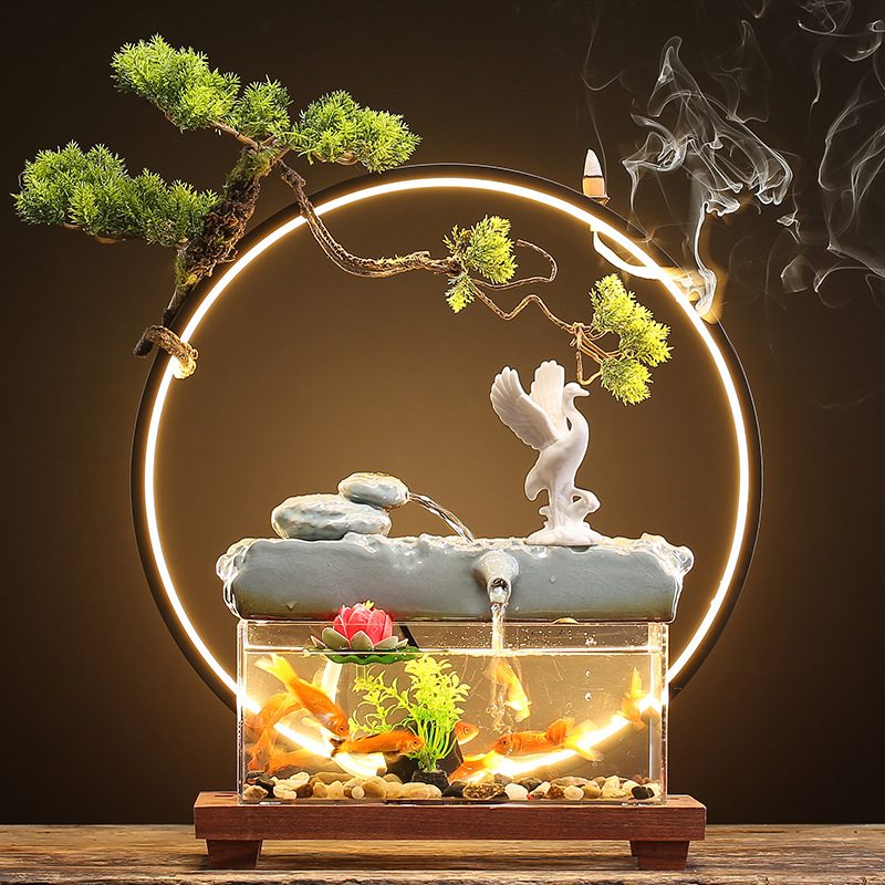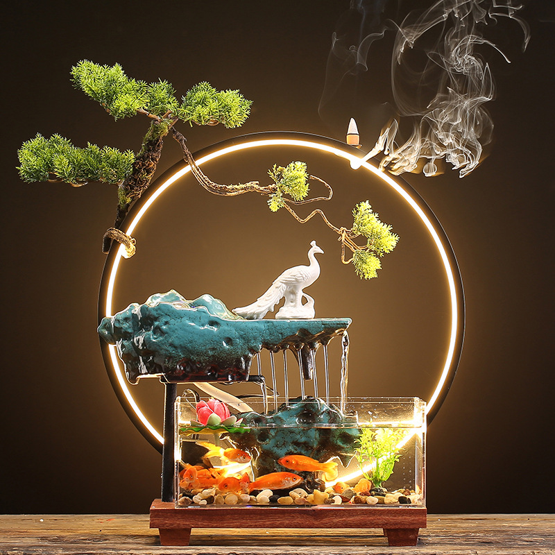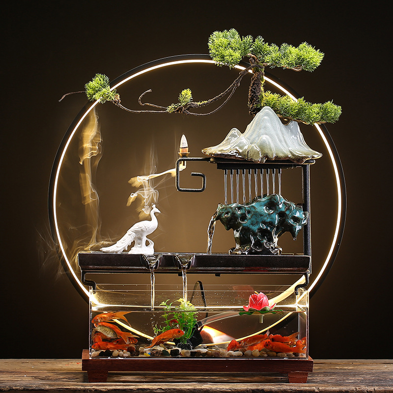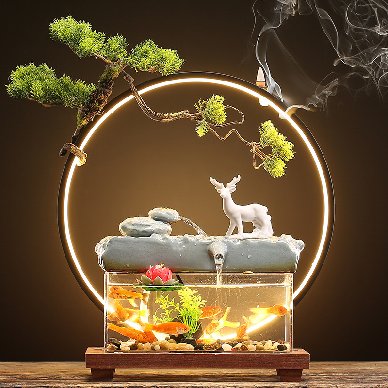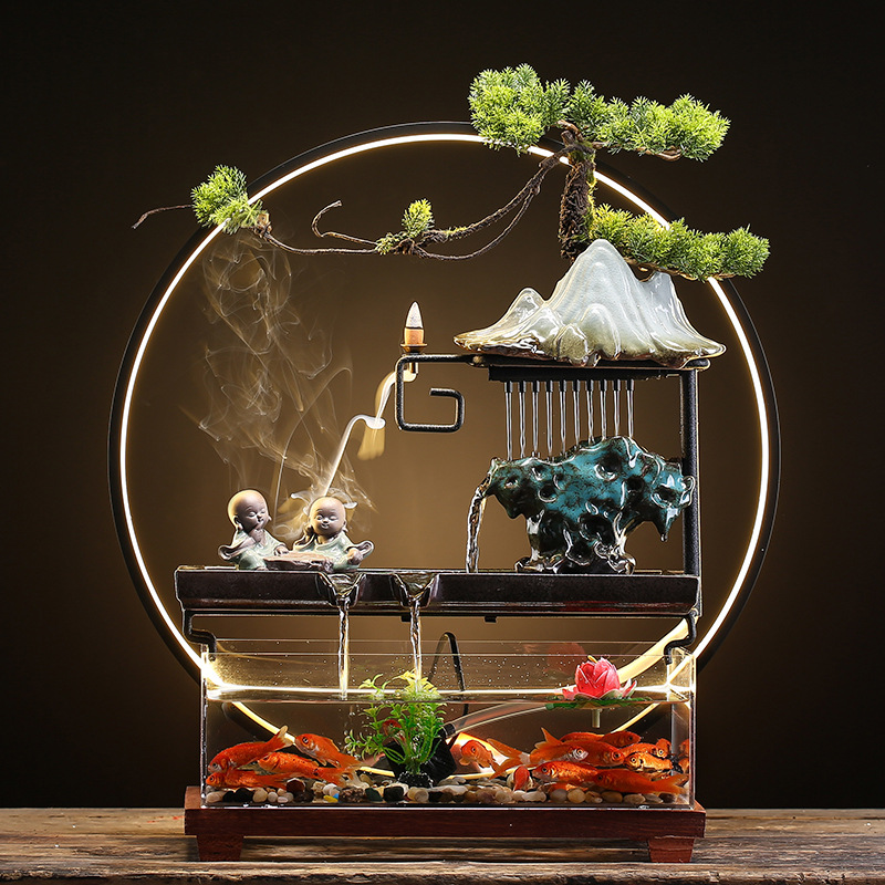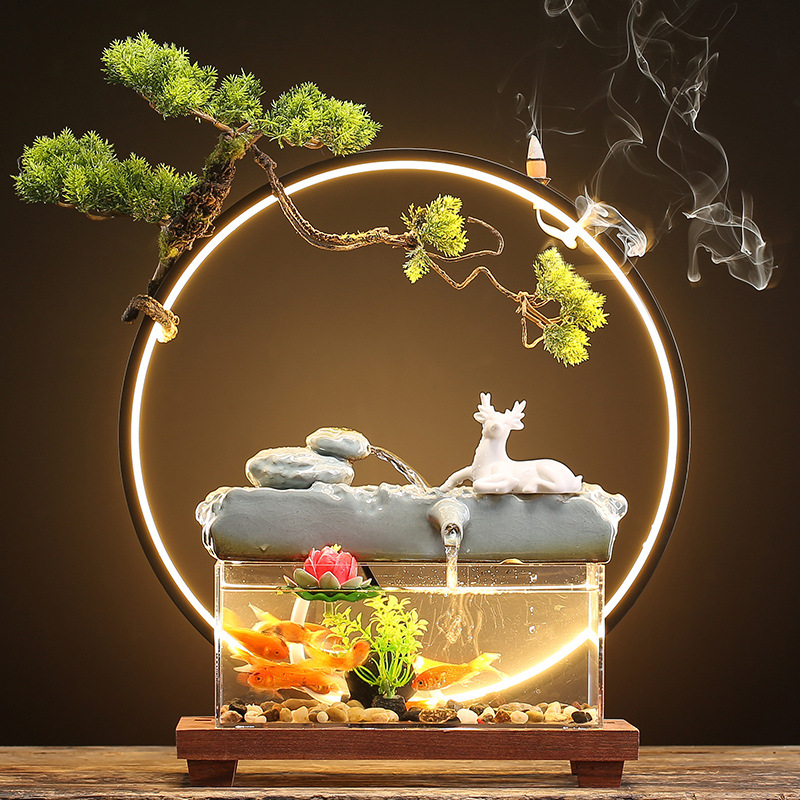 창조적 인 rockery 세라믹 순환 물 디스펜서 어항 풍경 사무실 데스크탑 장식 거실 오프닝 선물