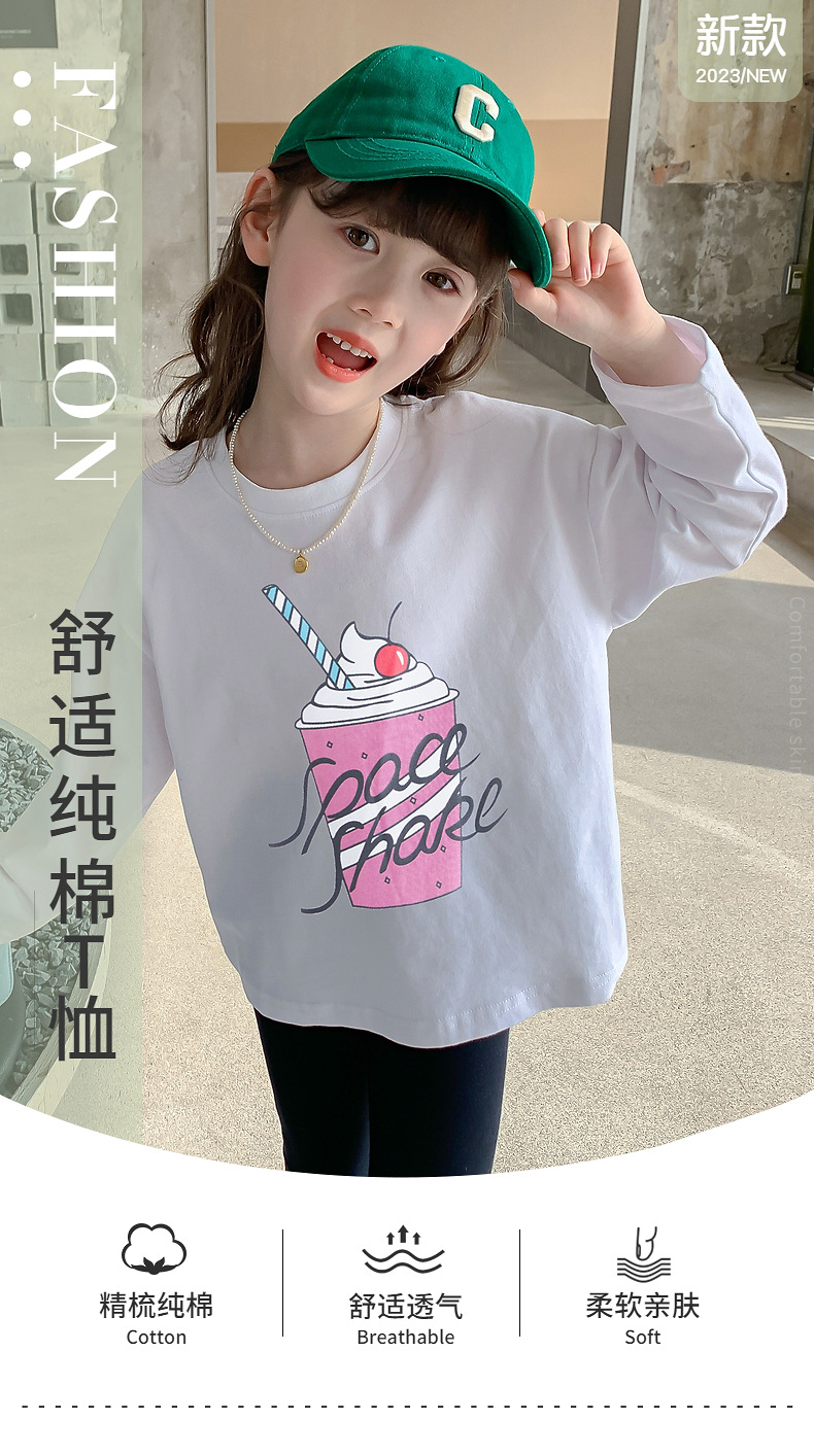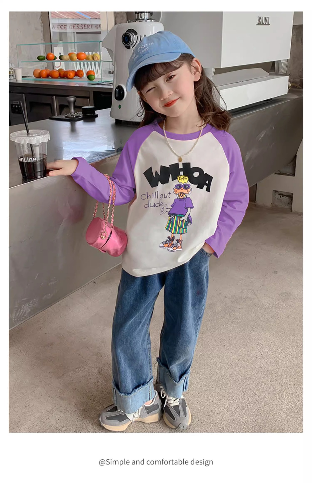 한국판 아동복 긴팔 티셔츠 면 만화 인쇄 소녀 티셔츠 가을 승무원 목 어린이 하의 셔츠 머리카락의 세대스토어 가기