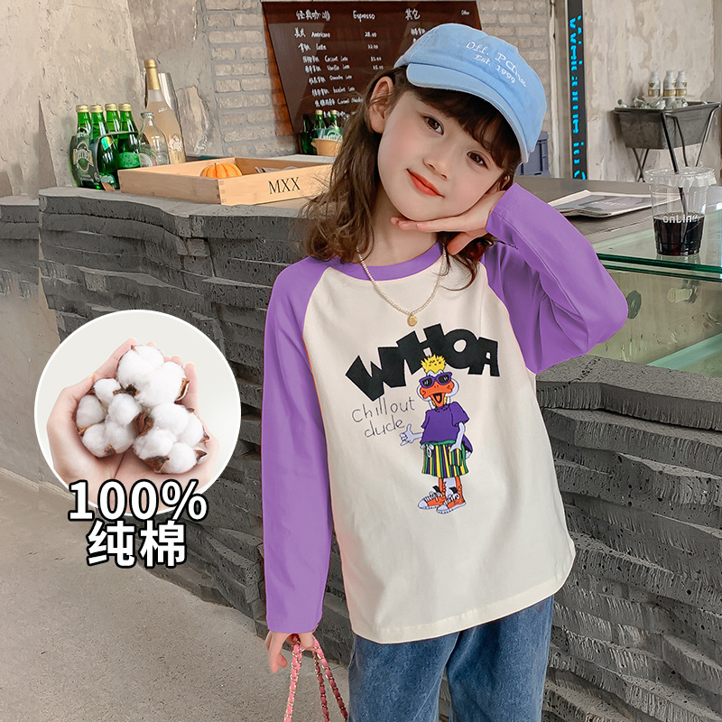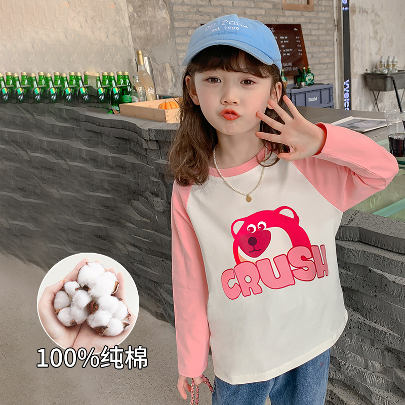 한국판 아동복 긴팔 티셔츠 면 만화 인쇄 소녀 티셔츠 가을 승무원 목 어린이 하의 셔츠 머리카락의 세대