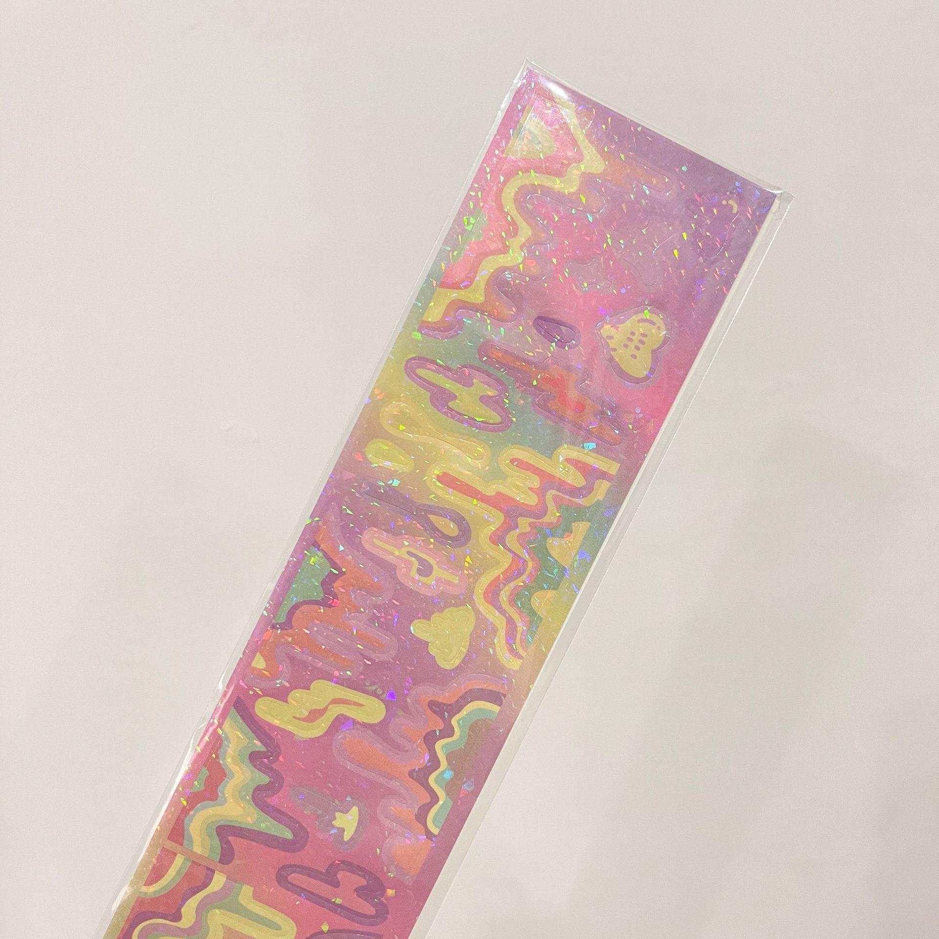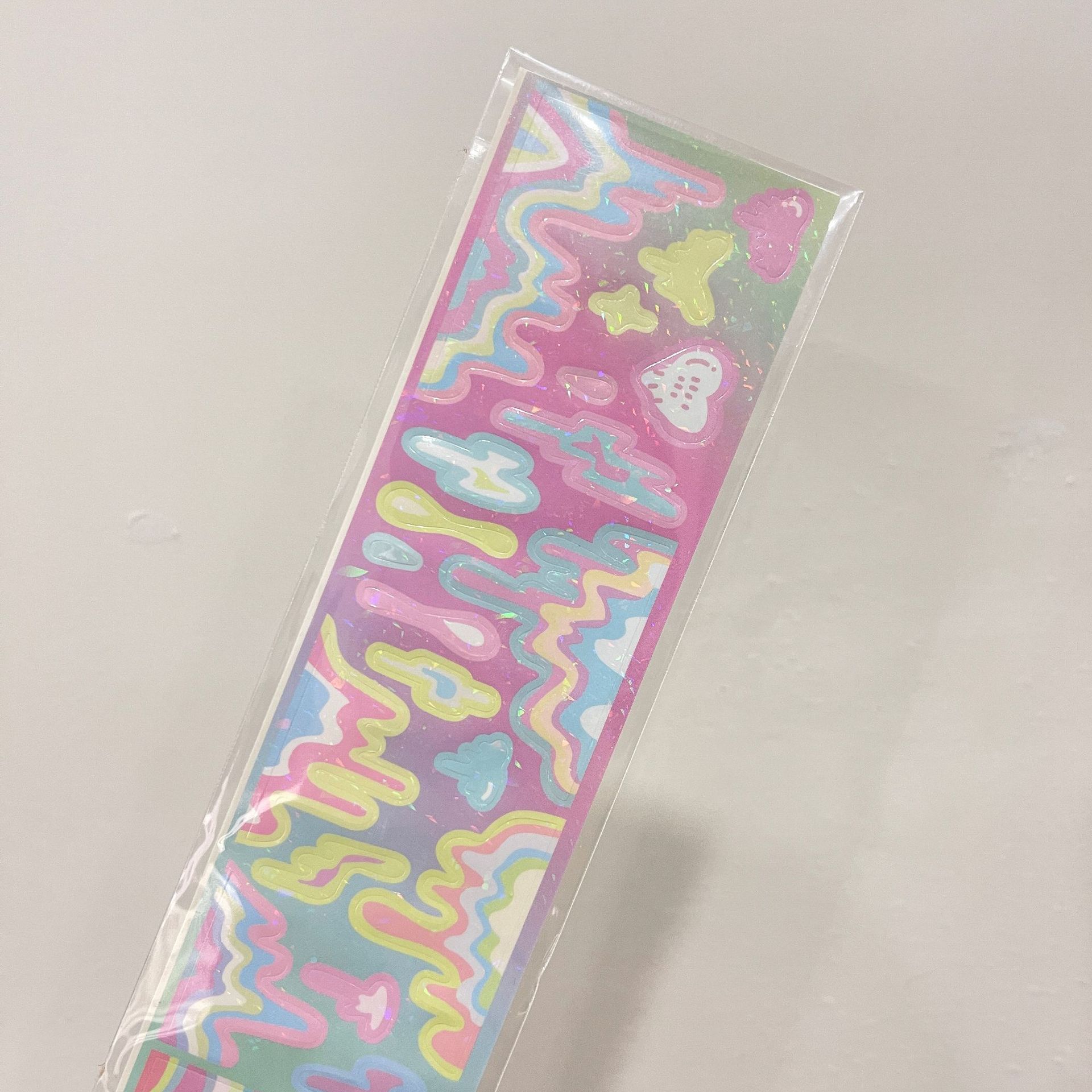 한국 깜박이는 웨이브 스티커 그라디언트 컬러 레이저 스티커 스타 카드 장식 스파클링 스티커