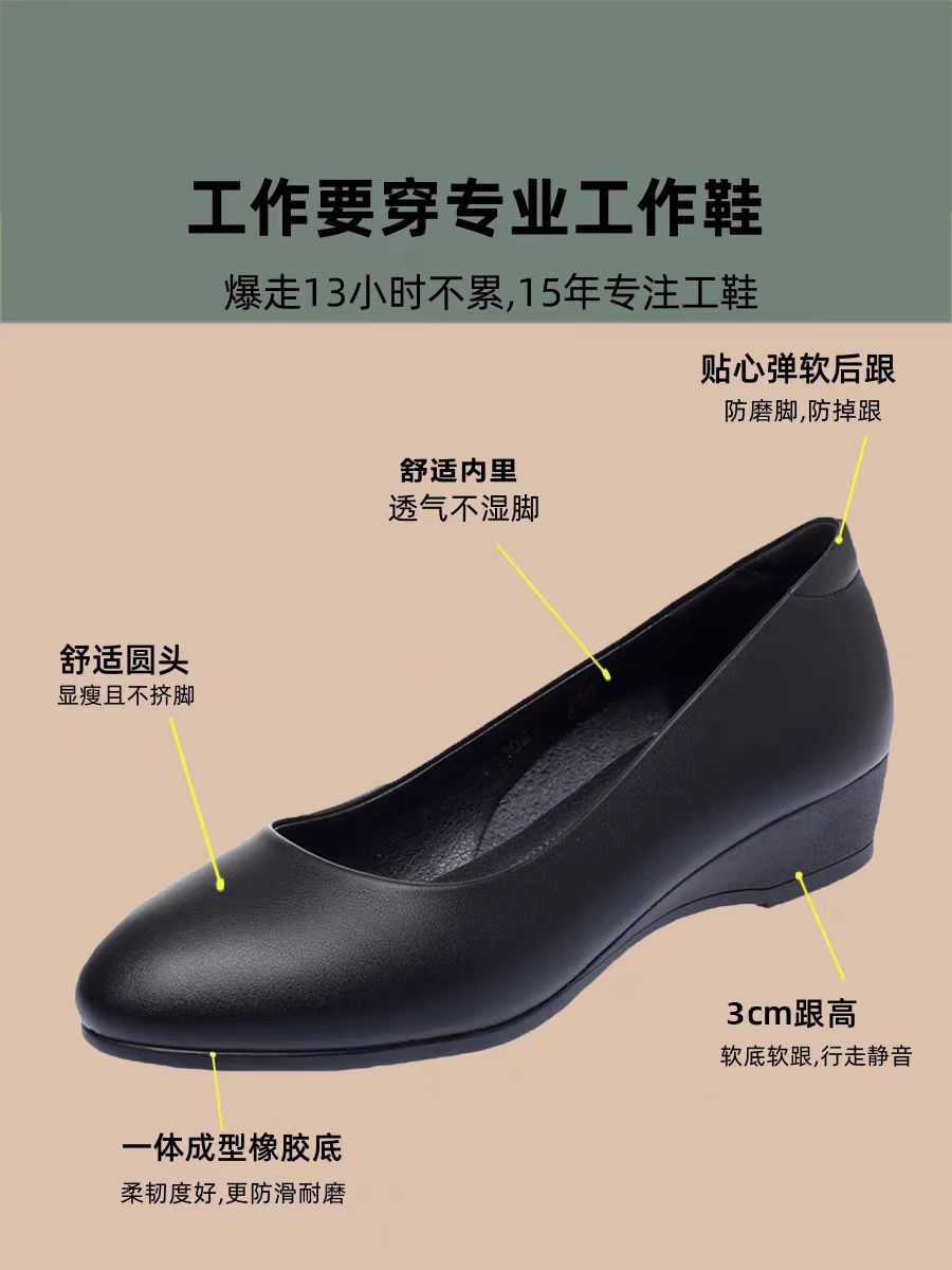 여성용 부드러운 가죽 작업화, 블랙, 직장용, 전문직, 부드러운 밑창 가죽 신발, 하이힐, 두꺼운 굽, 단화, 승무원, 다용도 여성화, 봄 여름스토어 가기