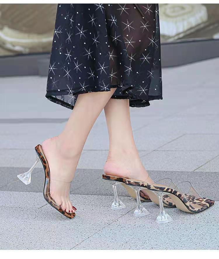 2023 여름 새로운 투명 슬리퍼 여자의 사각 발가락 하이힐 여자의 크로스 보더 플러스 사이즈 대외 무역 여자의 신발스토어 가기