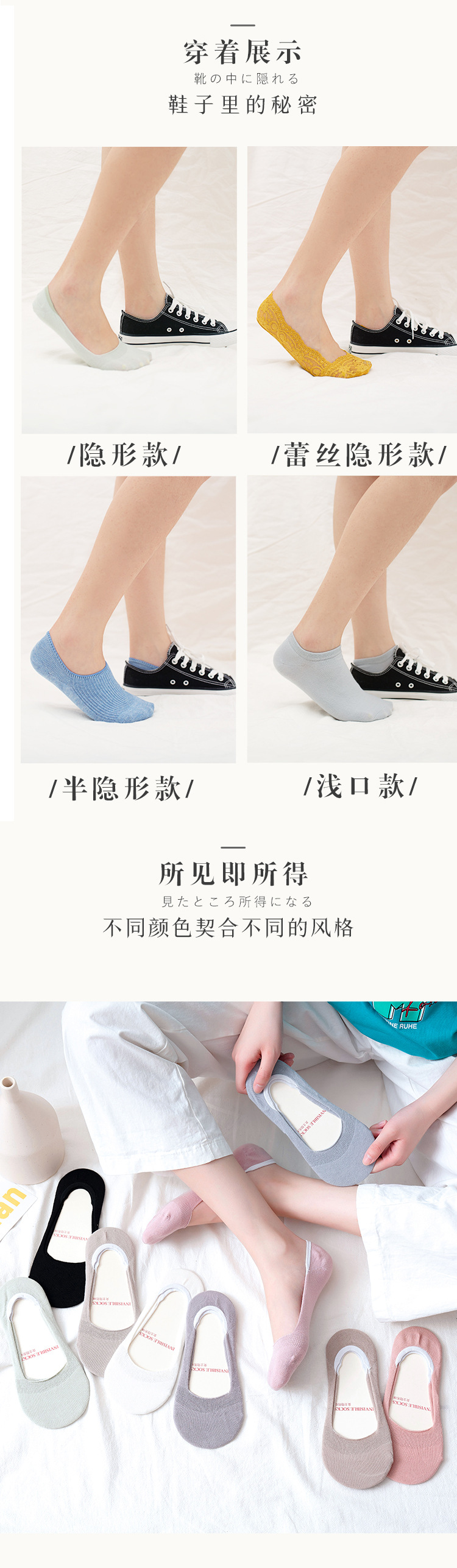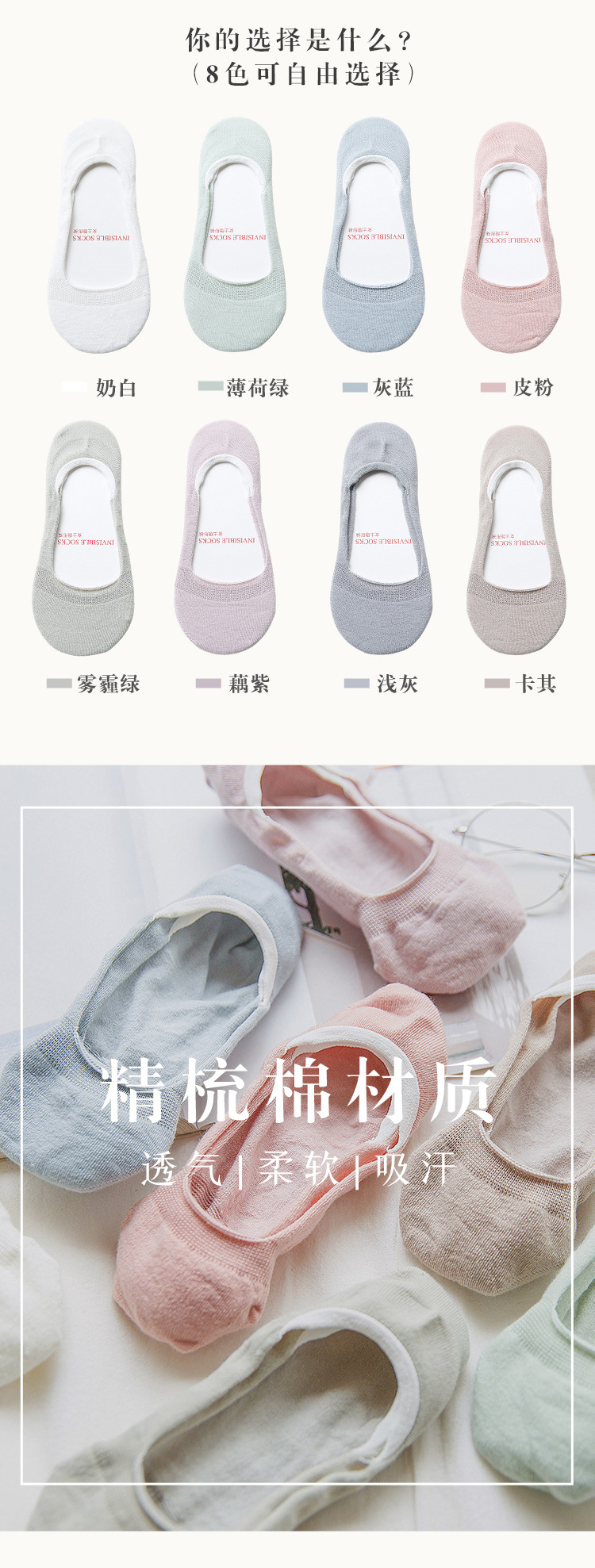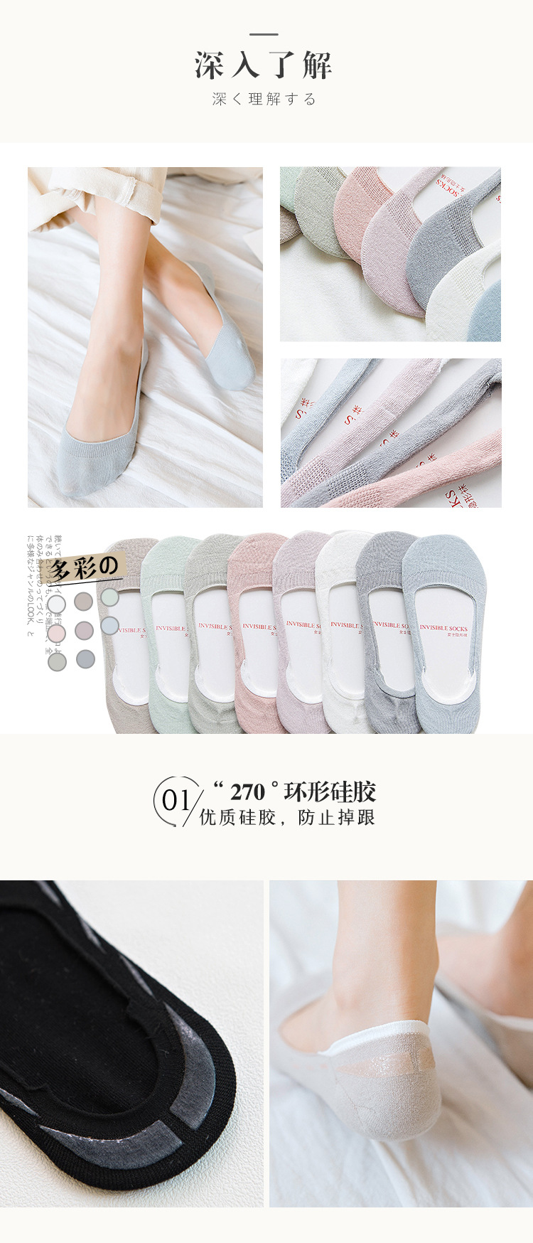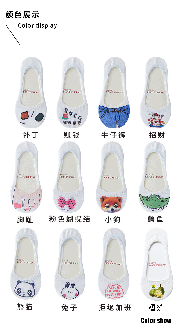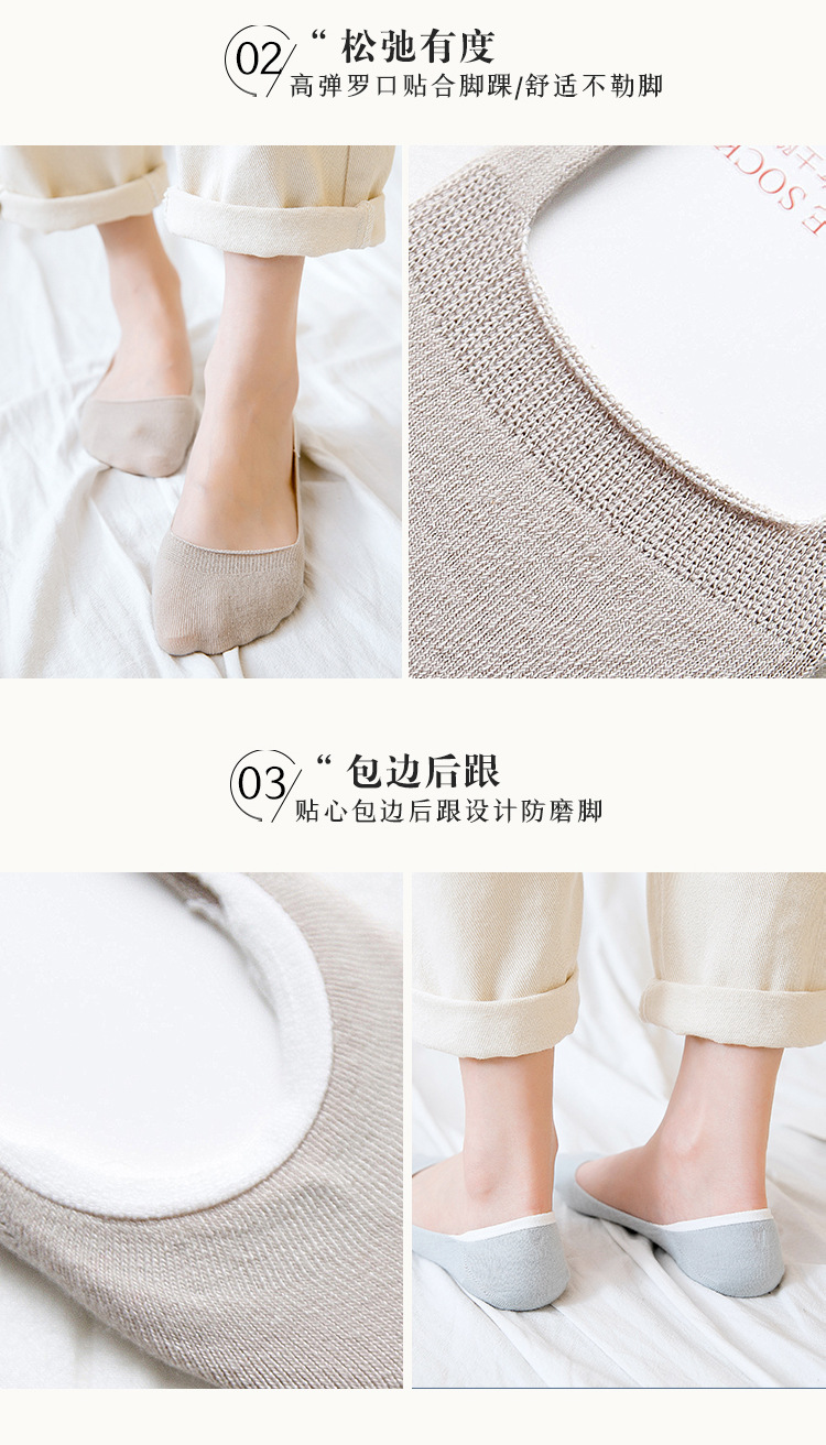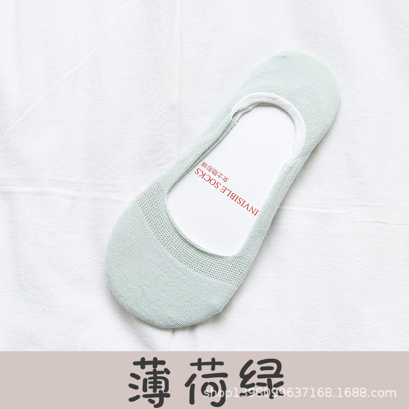여성용 양말 얇은 봄과 여름 면화 얕은 입 미끄럼 방지 보트 양말 여성용 보이지 않는 단색 양말 면화 Zhuji 도매스토어 가기