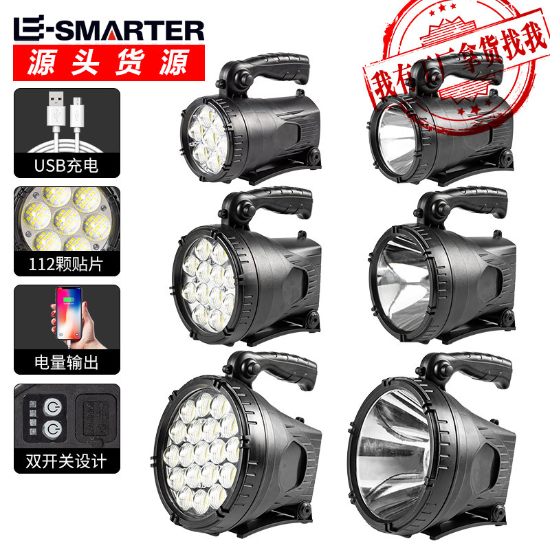 충전식 고출력 장거리 조명이 있는 크로스보더 새로운 강력한 조명 서치라이트 LED 실외 휴대용 손전등스토어 가기