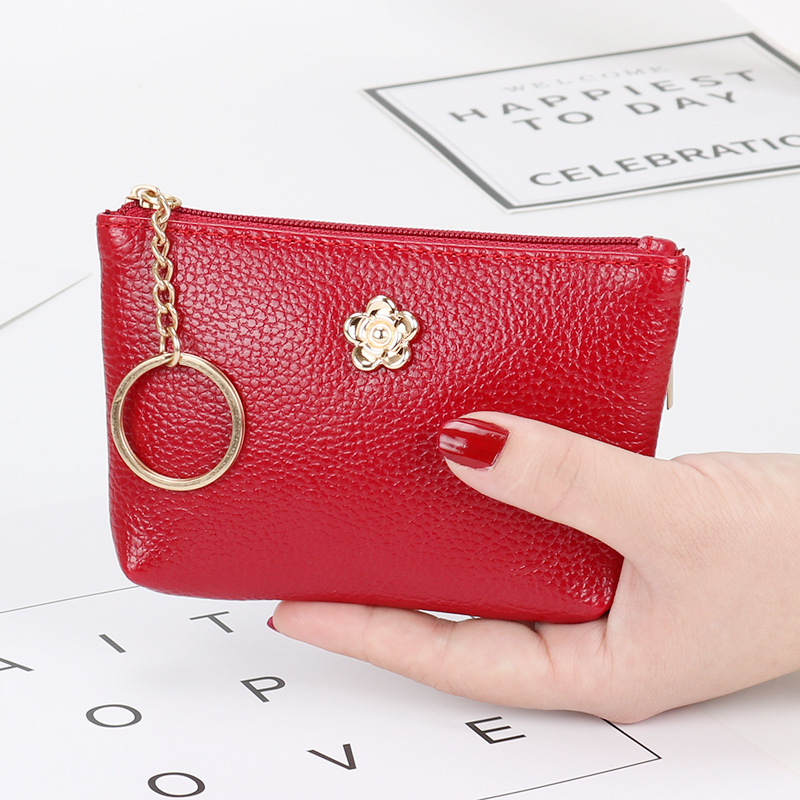 정품 가죽 질감 짧은 동전 지갑 초박형 여성용 카드 가방 한국식 미니 소형 지갑 부드러운 가죽 키 케이스 지퍼 백