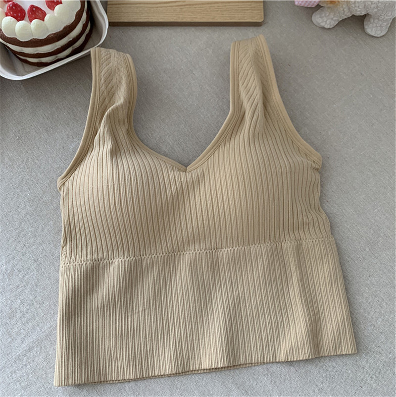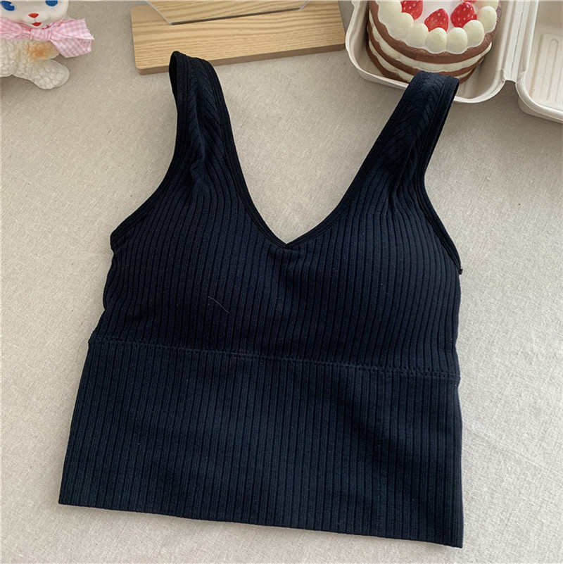 2022 새로운 니트 V넥 캐미솔 이너웨어 아우터 타이트 베이스 셔츠 아우터웨어 트렌디 짧은 민소매 탑스토어 가기