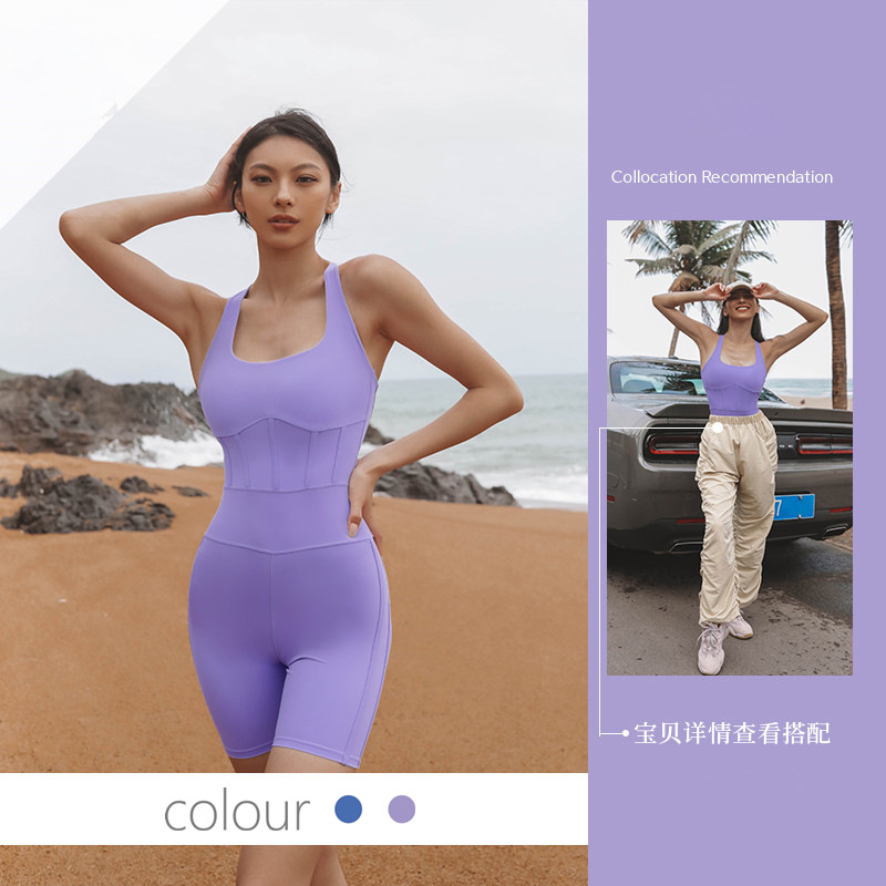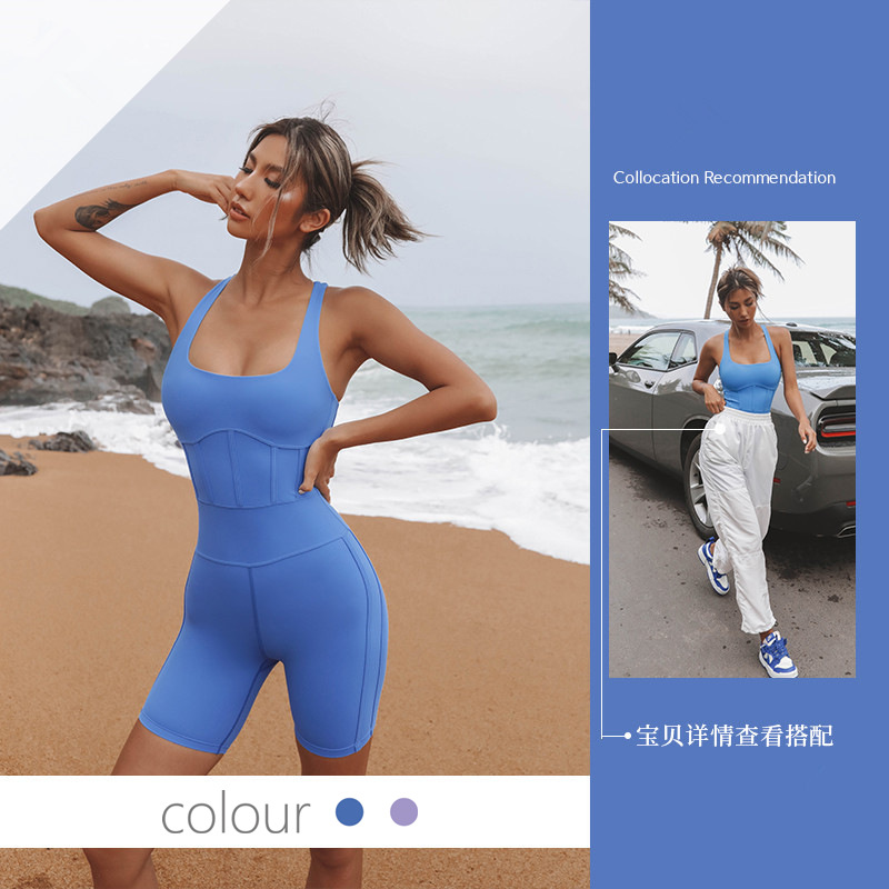 새로운 민소매 원피스 피트니스 세트 여성용 백 크로스 스포츠 요가 세트 물고기 뼈 복부 엉덩이 리프팅 원피스 세트 여성스토어 가기