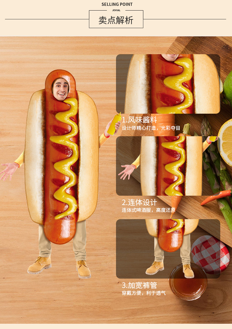 코스프레 코스프레 멕시코 축제 의상 성인 샴 무대 공연 의상 핫도그 의상스토어 가기