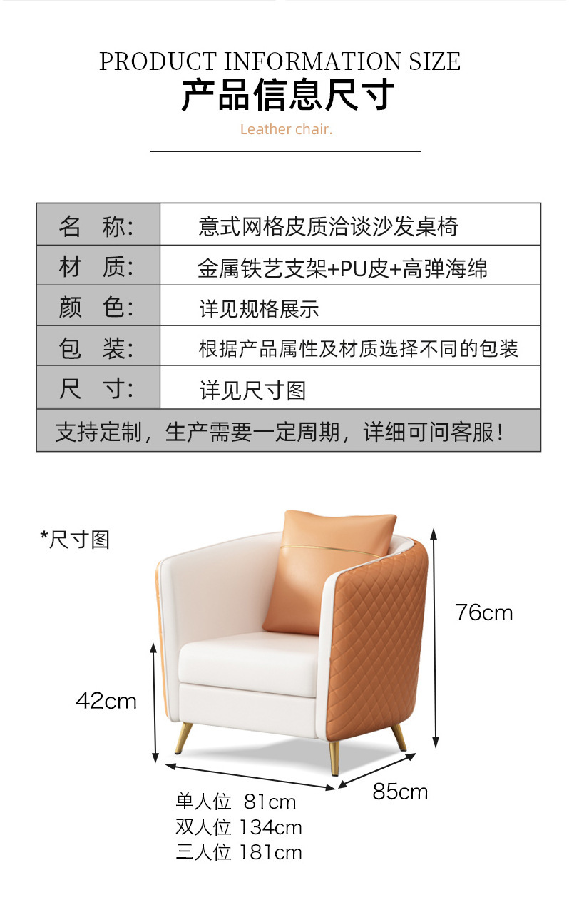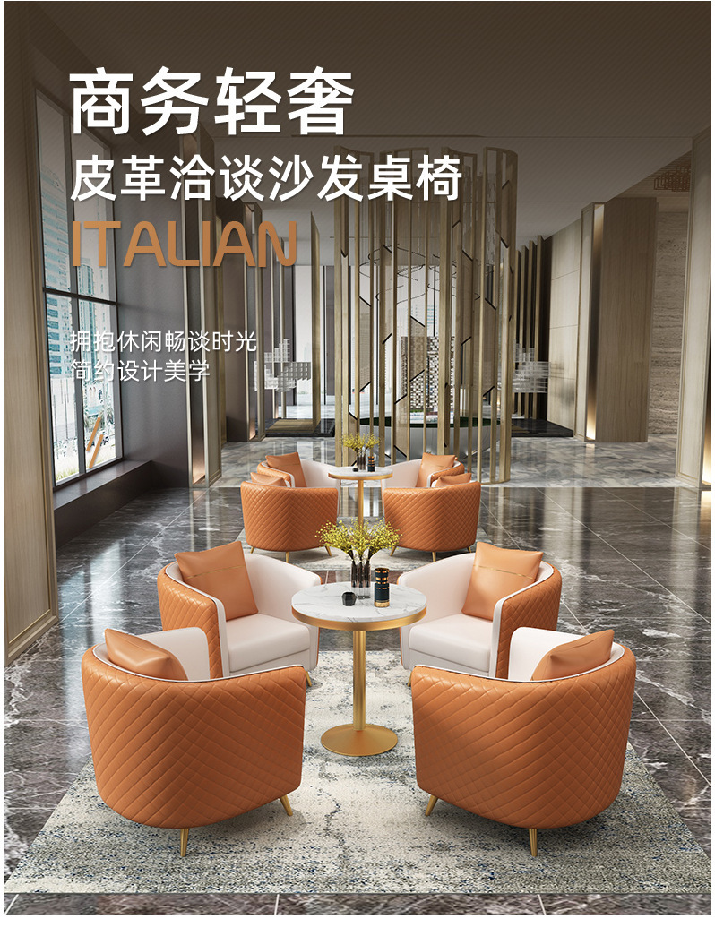 북유럽 라이트 럭셔리 1 인용 가죽 소파 의자 뷰티 살롱 클럽 레저 소파 리셉션 및 협상 테이블 및 의자 조합