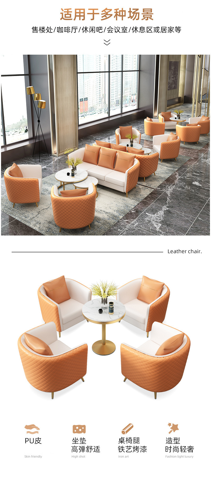 북유럽 라이트 럭셔리 1 인용 가죽 소파 의자 뷰티 살롱 클럽 레저 소파 리셉션 및 협상 테이블 및 의자 조합스토어 가기