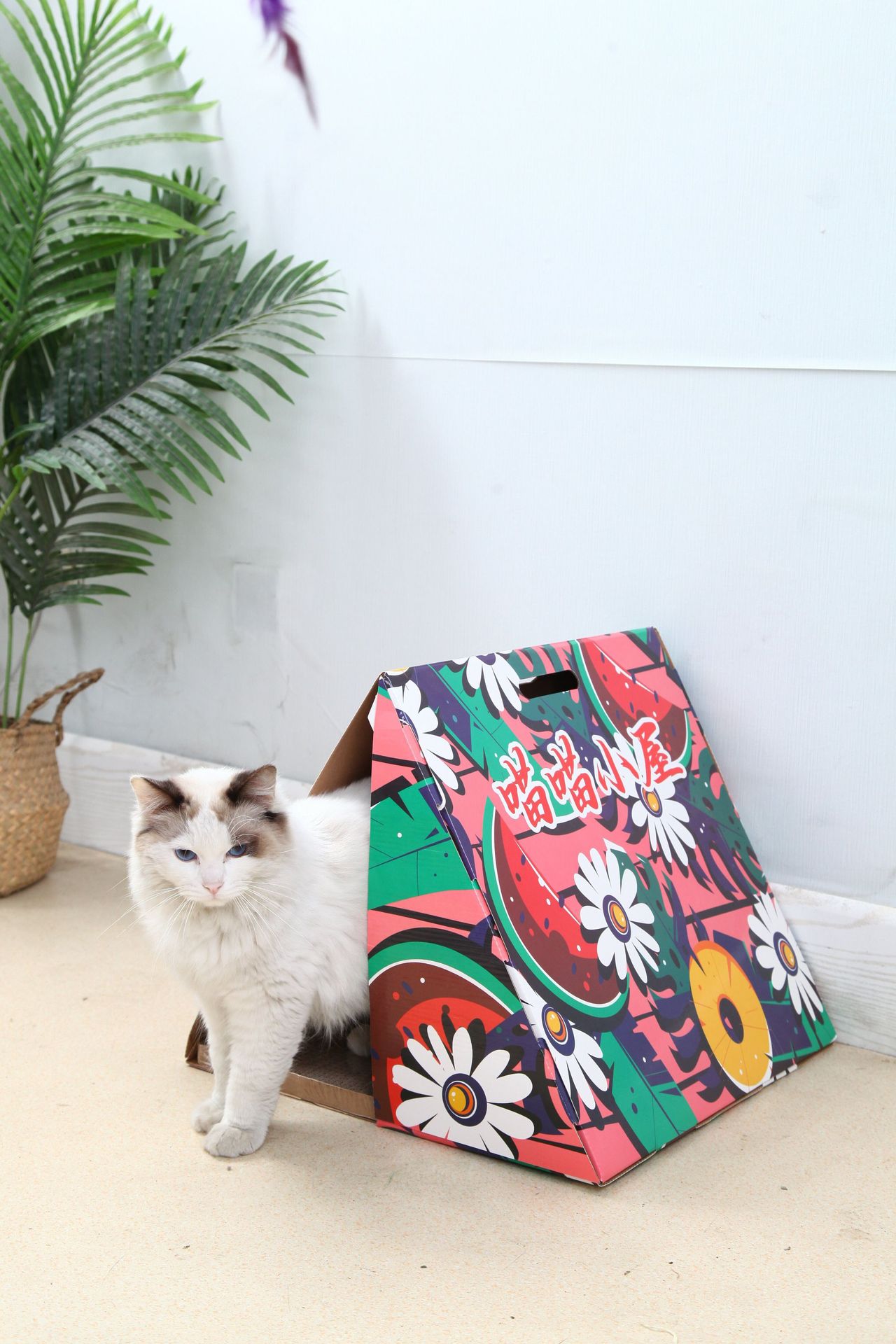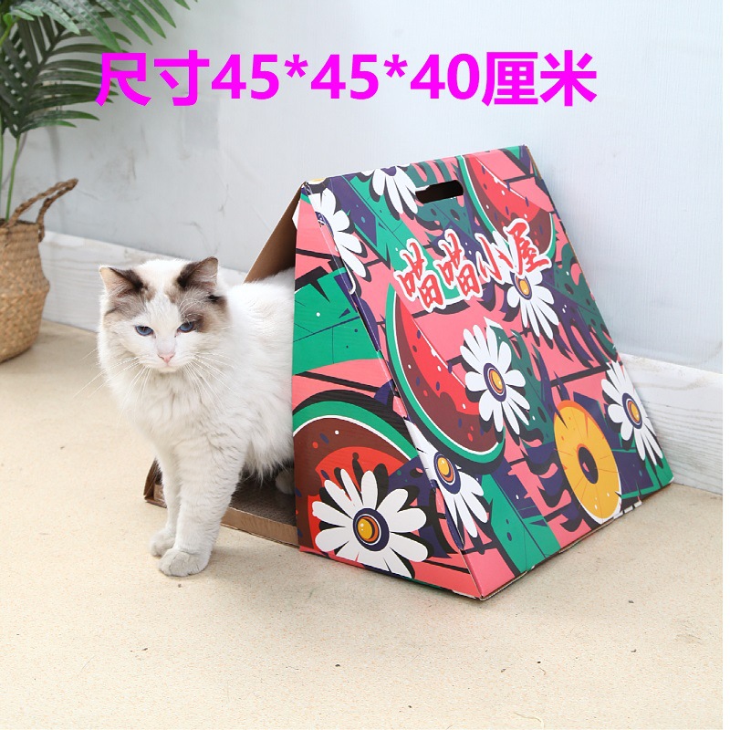 야옹 오두막 고양이 집 고양이 스크래치 보드 애완 동물 용품 고양이 둥지 발톱 그라인더 긁힘 방지 수직 고양이 스크래치 보드스토어 가기