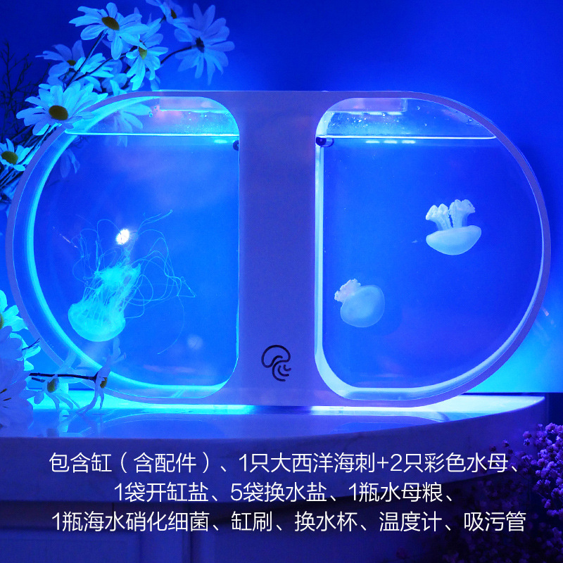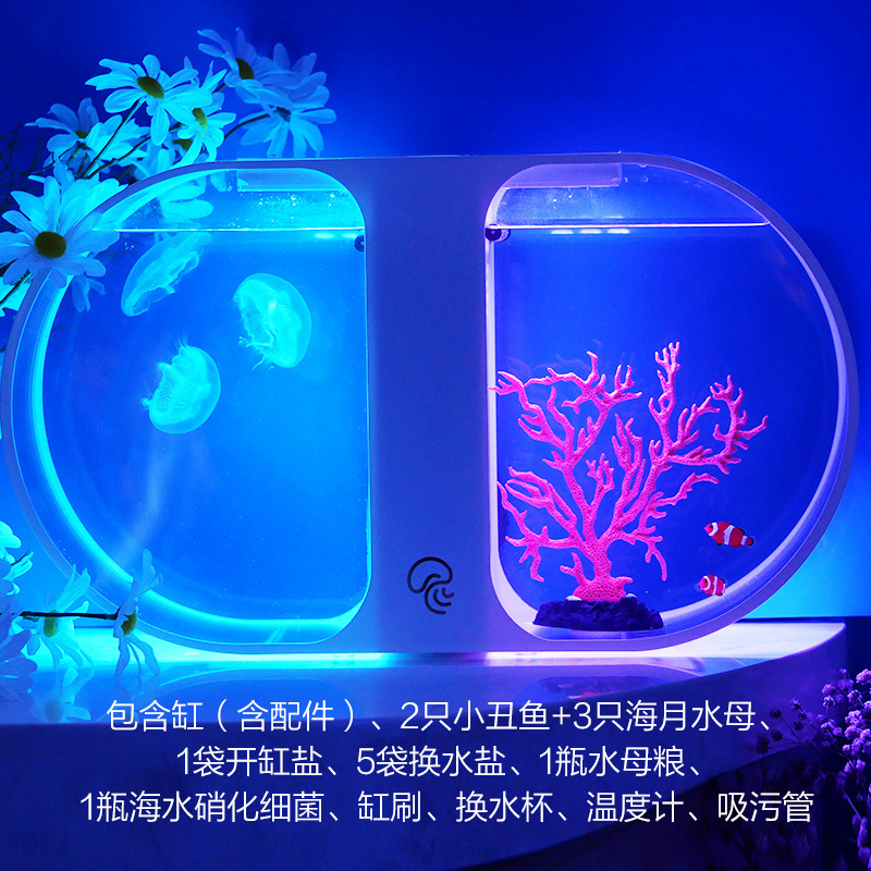 등산 애완 동물 작은 수족관 전체 세트 해초 공 선물 플러그인 전기 가열 데스크탑 물고기 탱크 수족관 미니스토어 가기