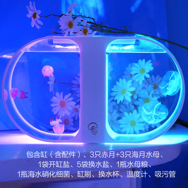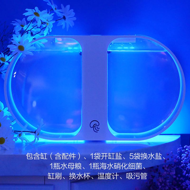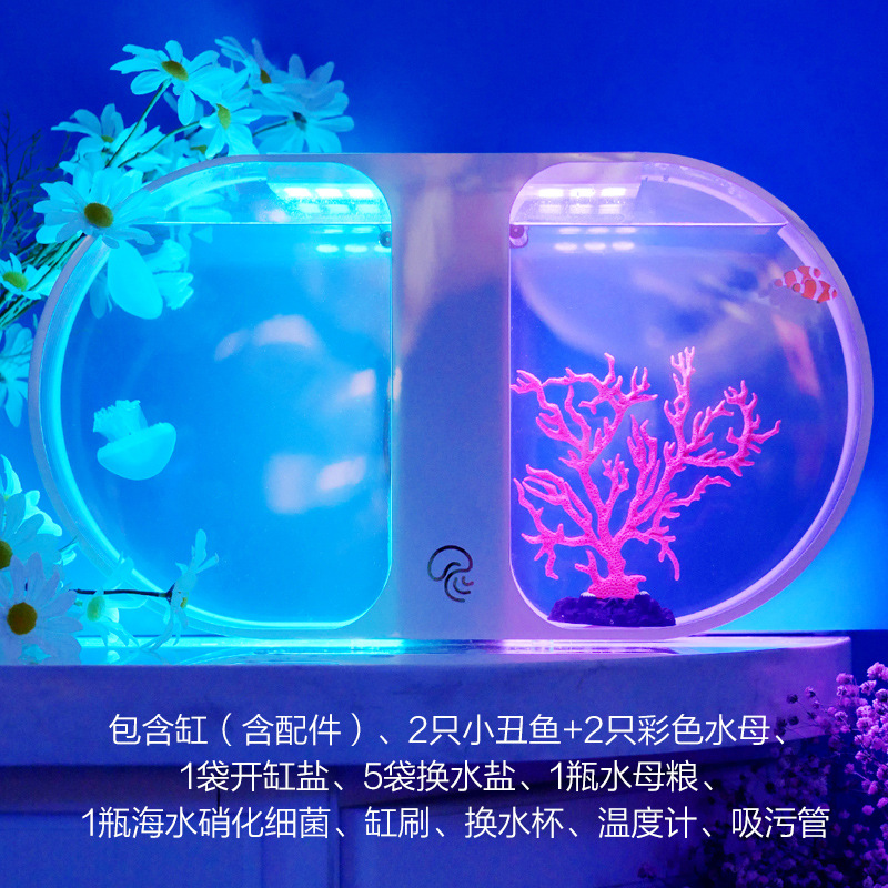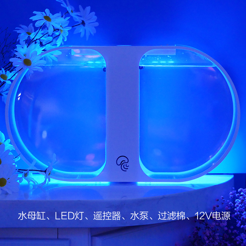 등산 애완 동물 작은 수족관 전체 세트 해초 공 선물 플러그인 전기 가열 데스크탑 물고기 탱크 수족관 미니