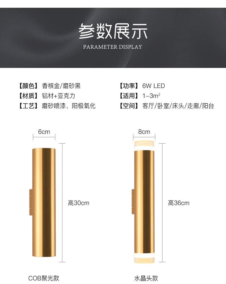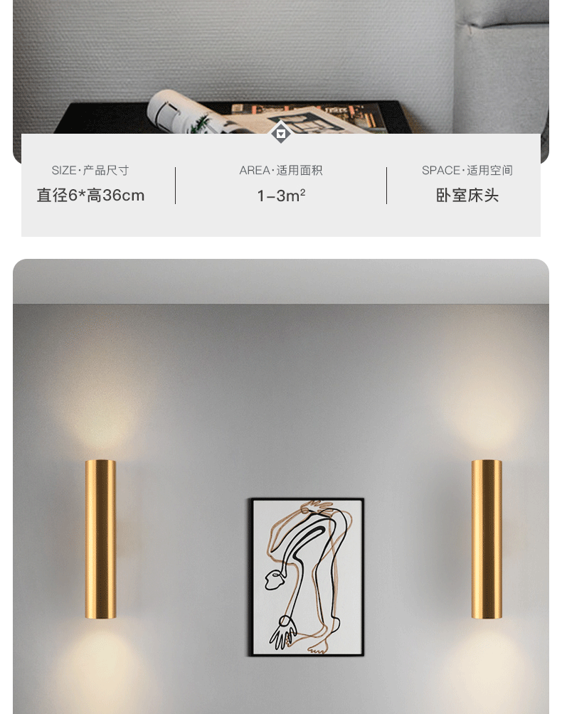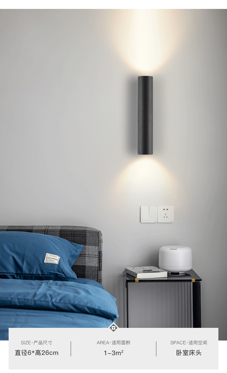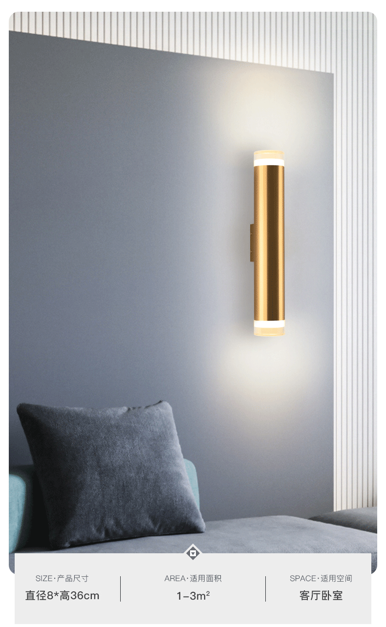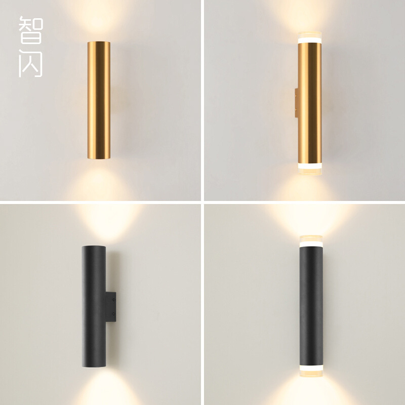 스마트 플래시 현대 간단한 이중 황금 원통형 벽 램프 거실 배경 벽 통로 복도 침실 침대 옆 벽 램프