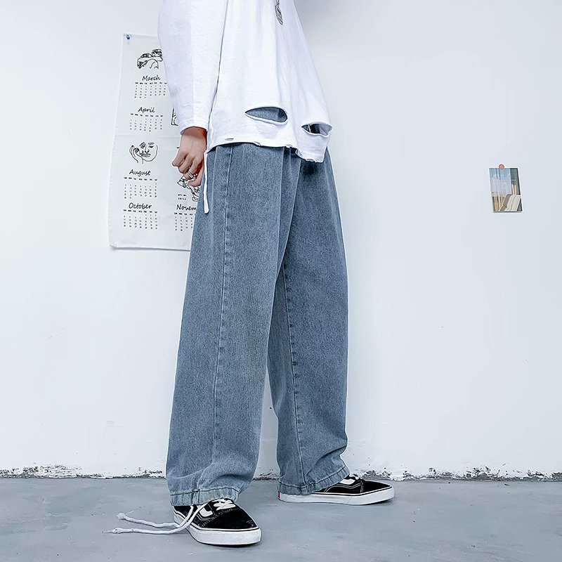 와이드 레그 진 남성용 스트레이트 레그 루즈한 한국 스타일 트렌디한 홍콩 스타일 디핑 팬츠 캐주얼 올 매치스토어 가기