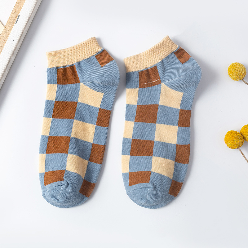 양말 여성용 인터넷 인기있는 새로운 스타일 여성용 얕은 짧은 양말 여름 얇은 격자 무늬 양말 일본식 귀여운 여성용 보트 양말