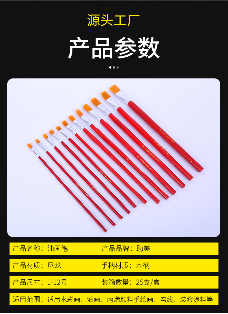 도매 공급 Huimei 단일 번호 1-12 빨간색 막대 오일 브러시 나일론 헤어 오일 페인팅 브러시 세트 브러시스토어 가기