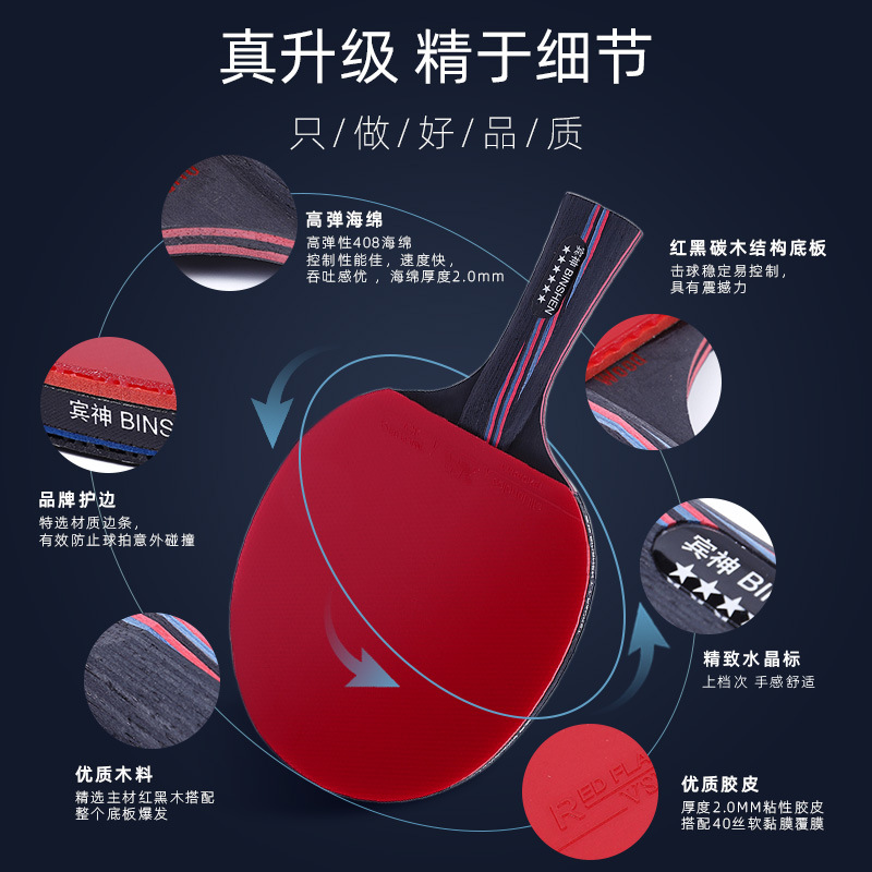 六星乒乓球拍红黑碳乒乓底板高弹性胶皮单只乒乓球拍支持一件代发