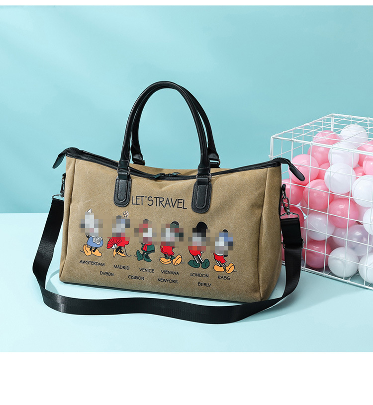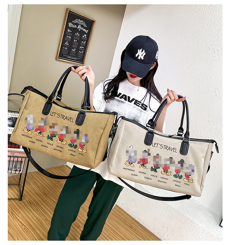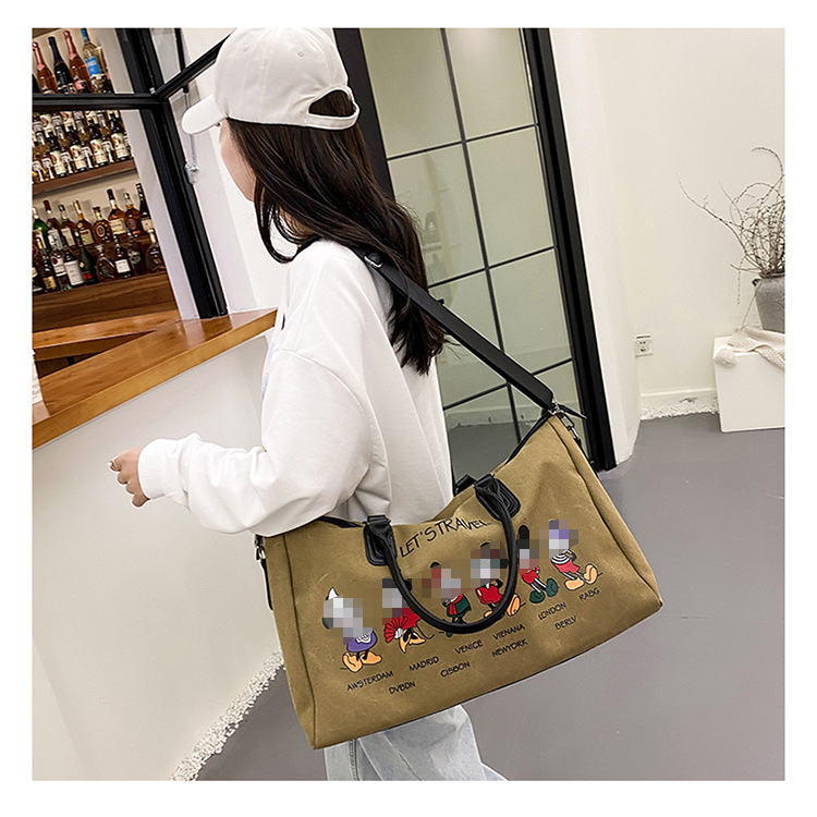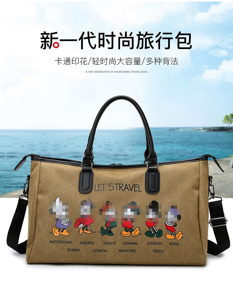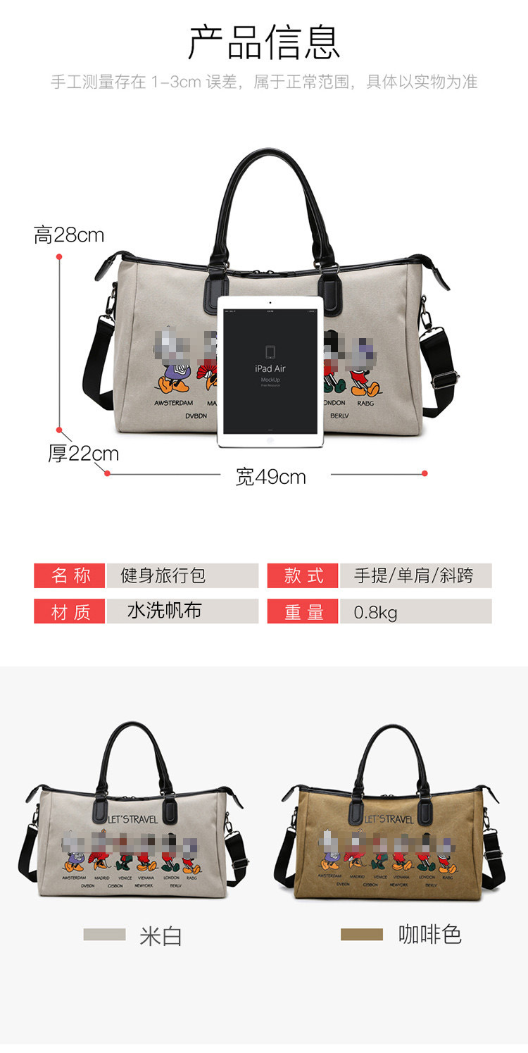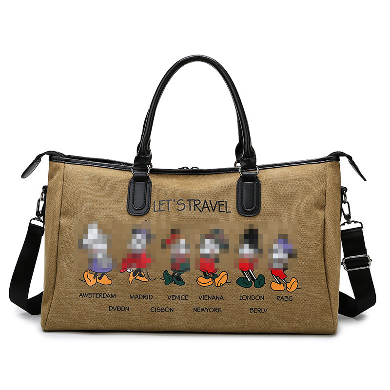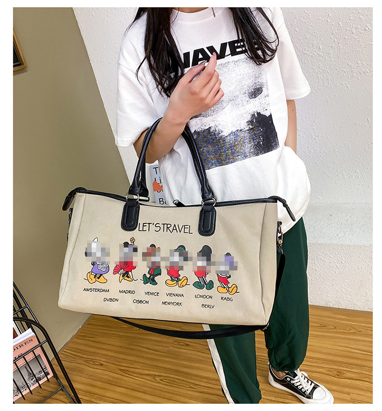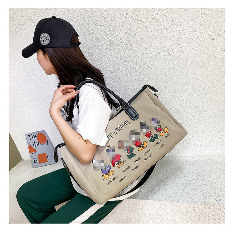 새로운 만화 피트니스 여행 가방 휴대용 대용량 수하물 가방 유럽과 미국 패션 씻어 캔버스 숄더 백