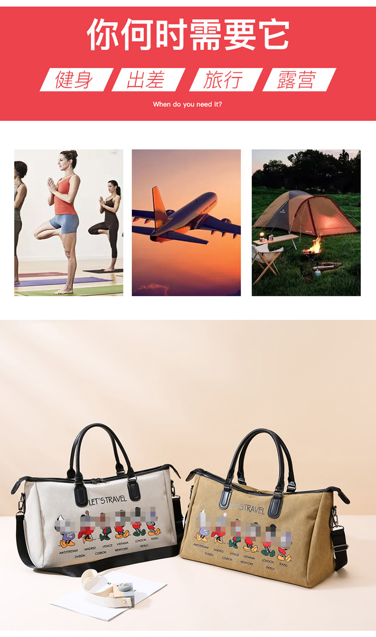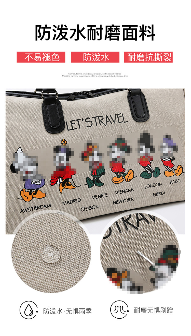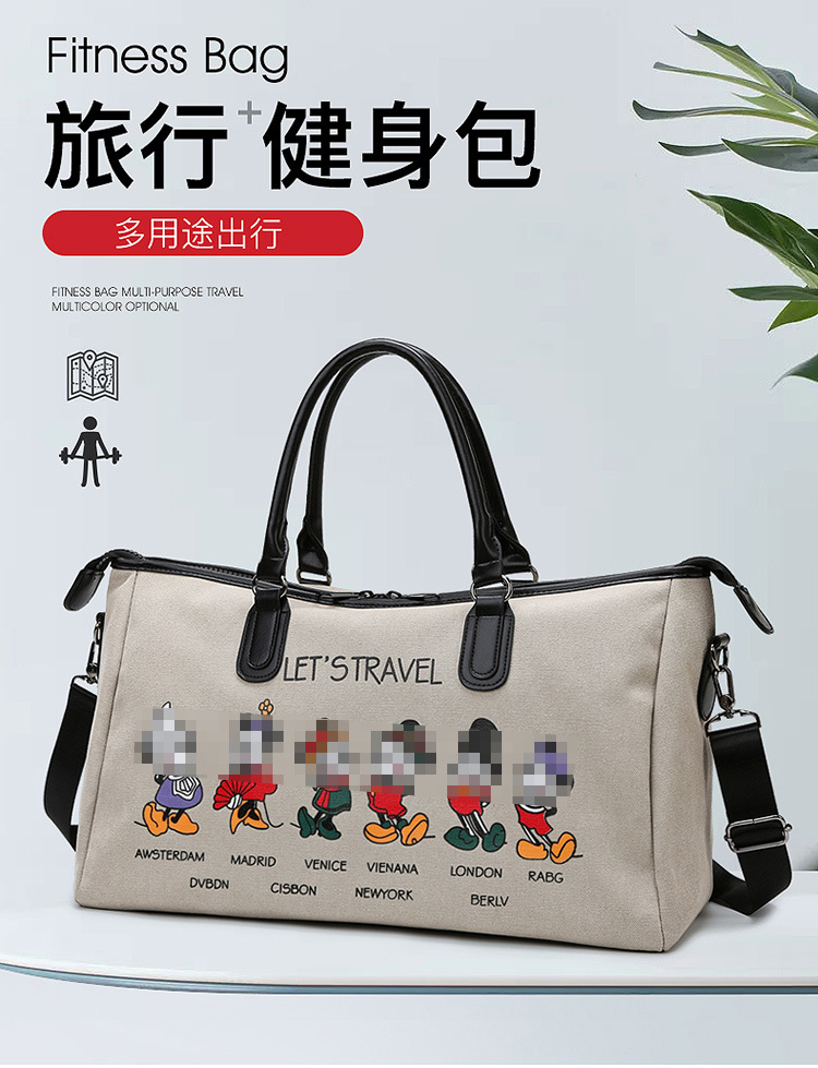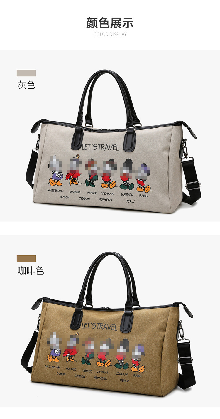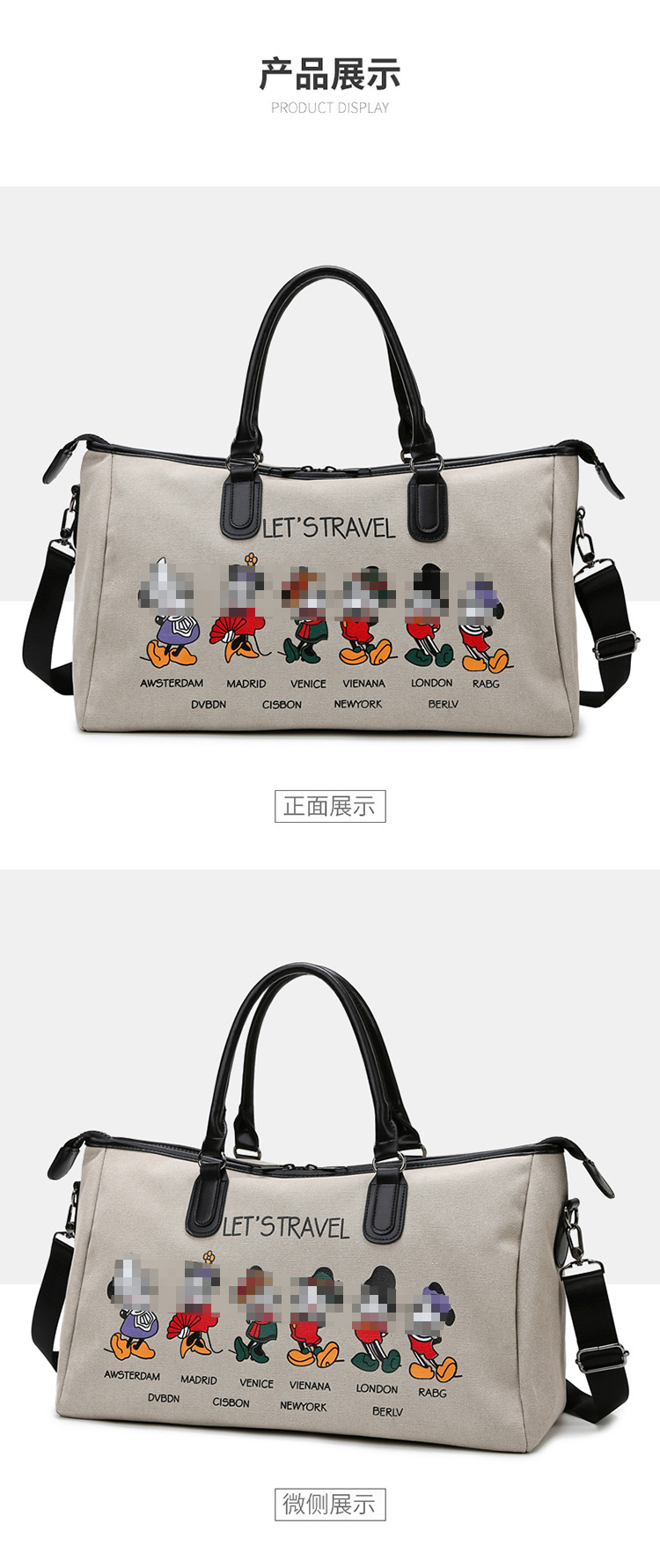 새로운 만화 피트니스 여행 가방 휴대용 대용량 수하물 가방 유럽과 미국 패션 씻어 캔버스 숄더 백