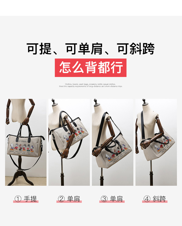 새로운 만화 피트니스 여행 가방 휴대용 대용량 수하물 가방 유럽과 미국 패션 씻어 캔버스 숄더 백스토어 가기