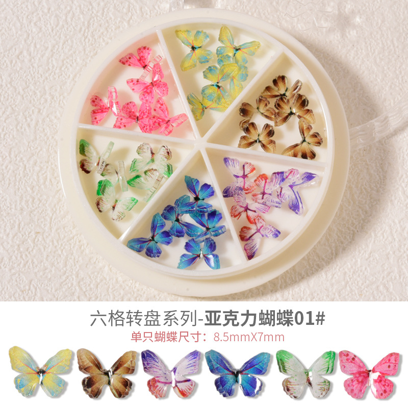 네일 아트 입체 나비 보석 아크릴 미니 네일 나비 6 박스 보석을위한 크로스 보더 완성스토어 가기