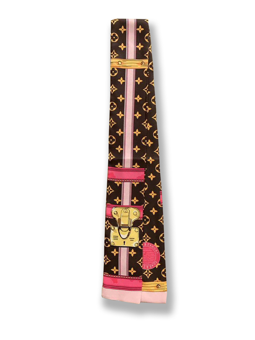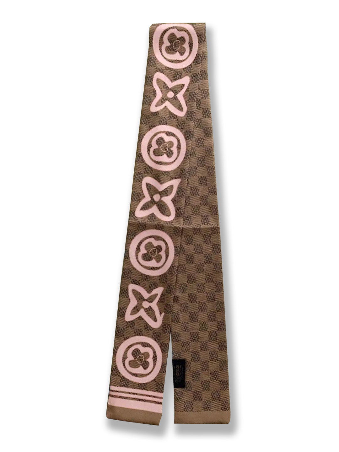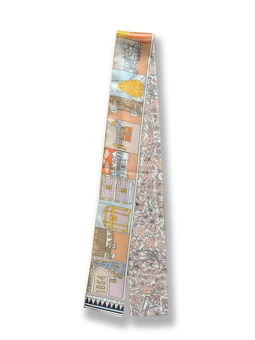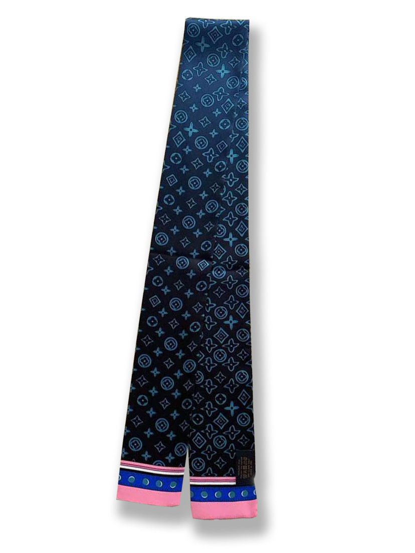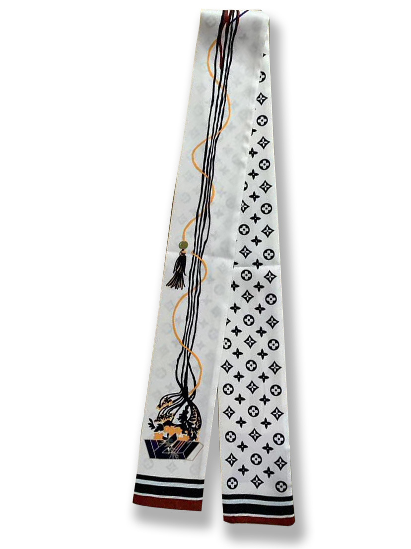 Ouyang Nana 체인 타이 백 실크 스카프 손잡이 장식 큰 브랜드 실크 스카프 작은 리본 헤어 벨트 다크 브라운 스카프 Presbyted 꽃