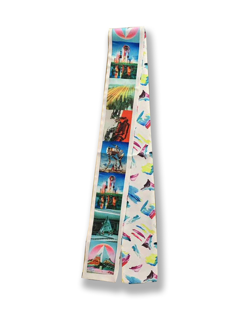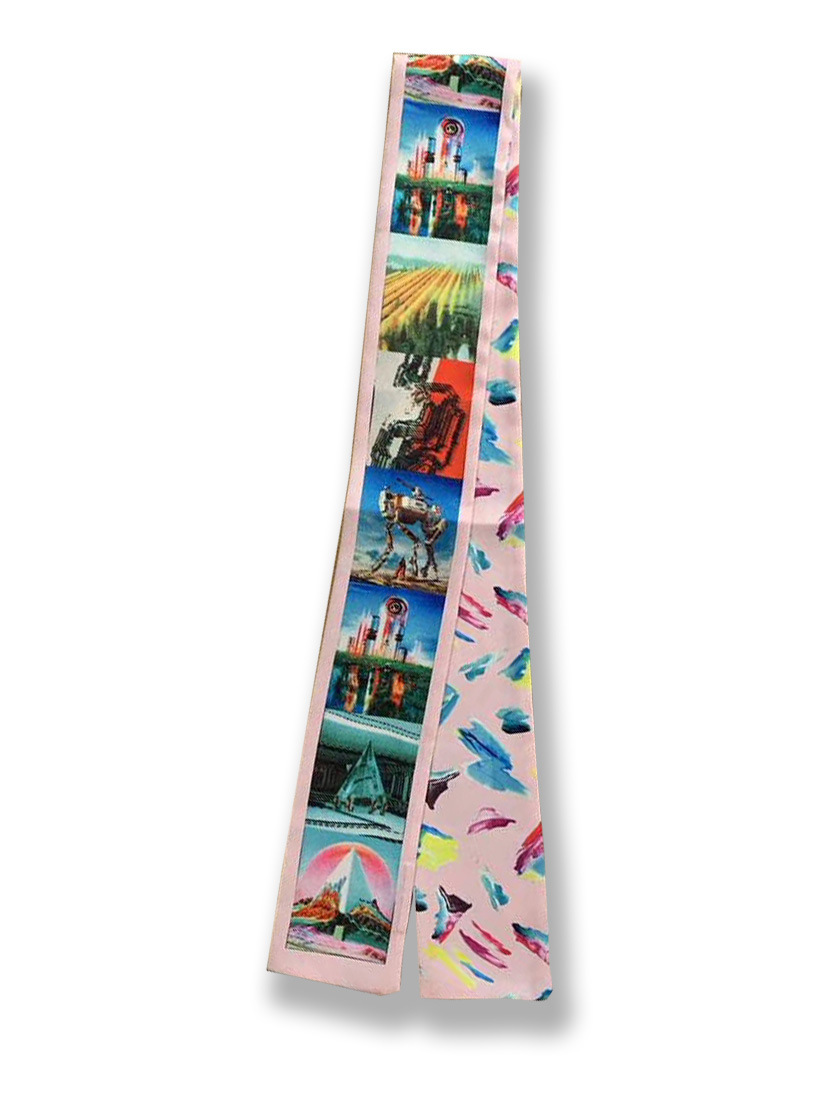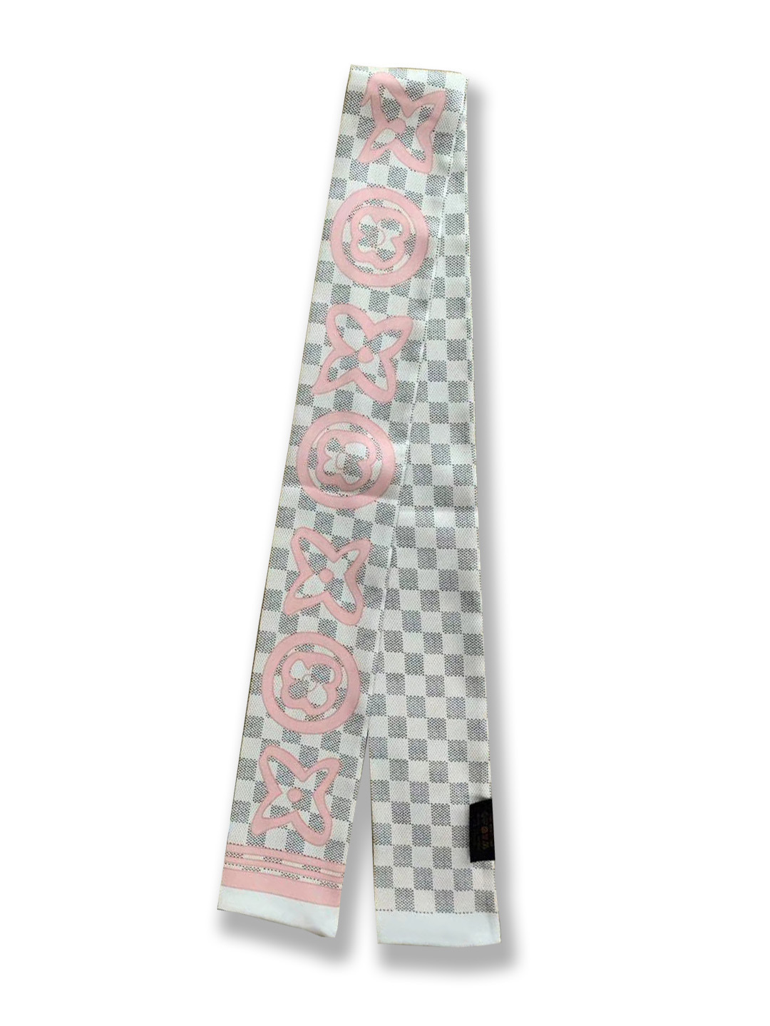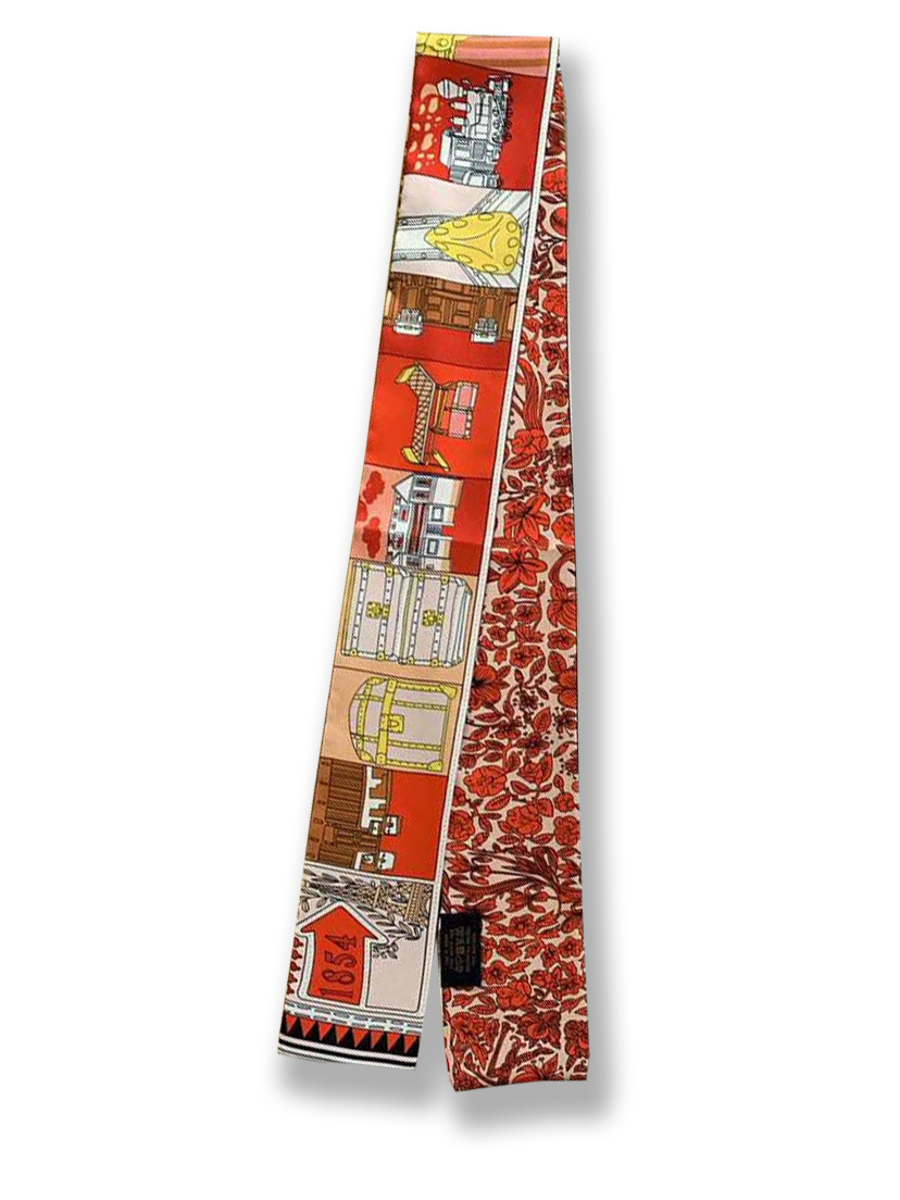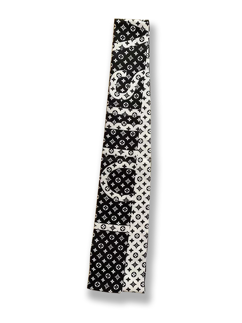 Ouyang Nana 체인 타이 백 실크 스카프 손잡이 장식 큰 브랜드 실크 스카프 작은 리본 헤어 벨트 다크 브라운 스카프 Presbyted 꽃