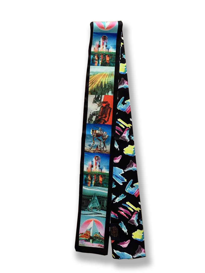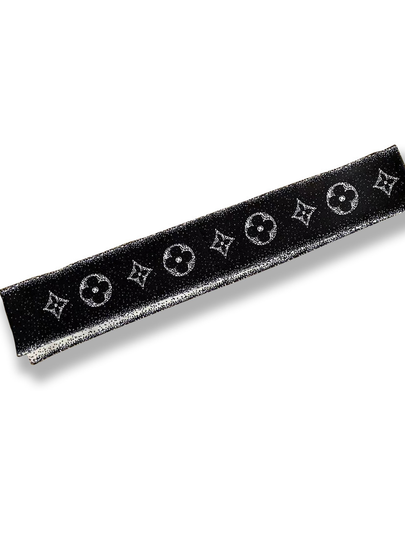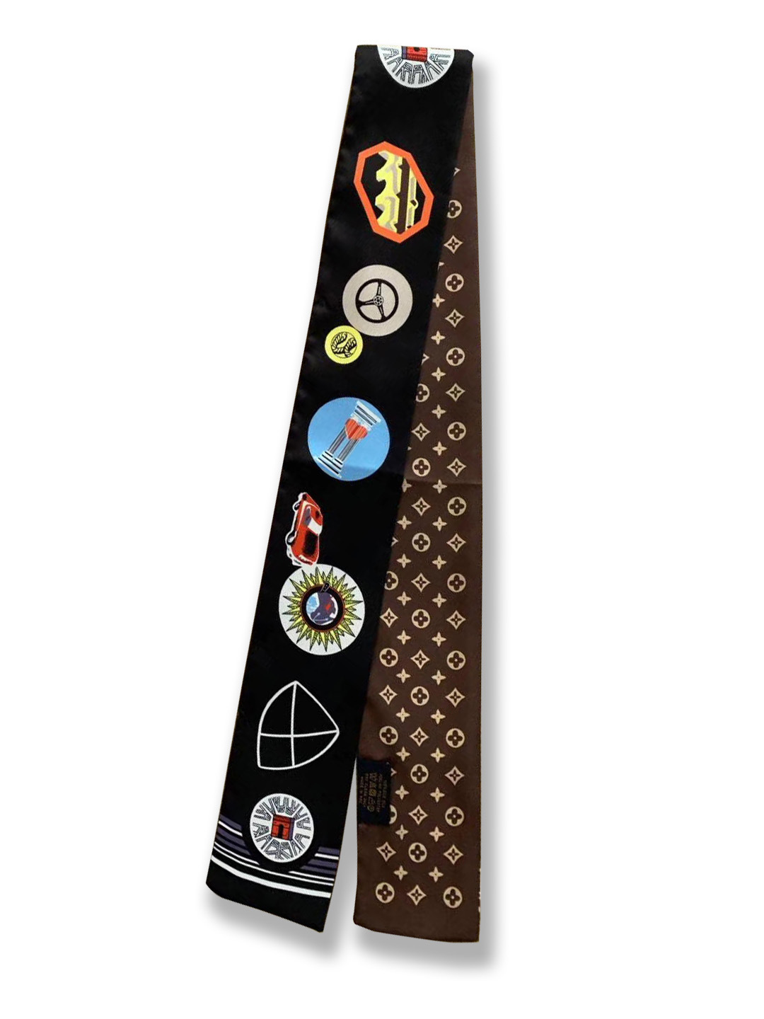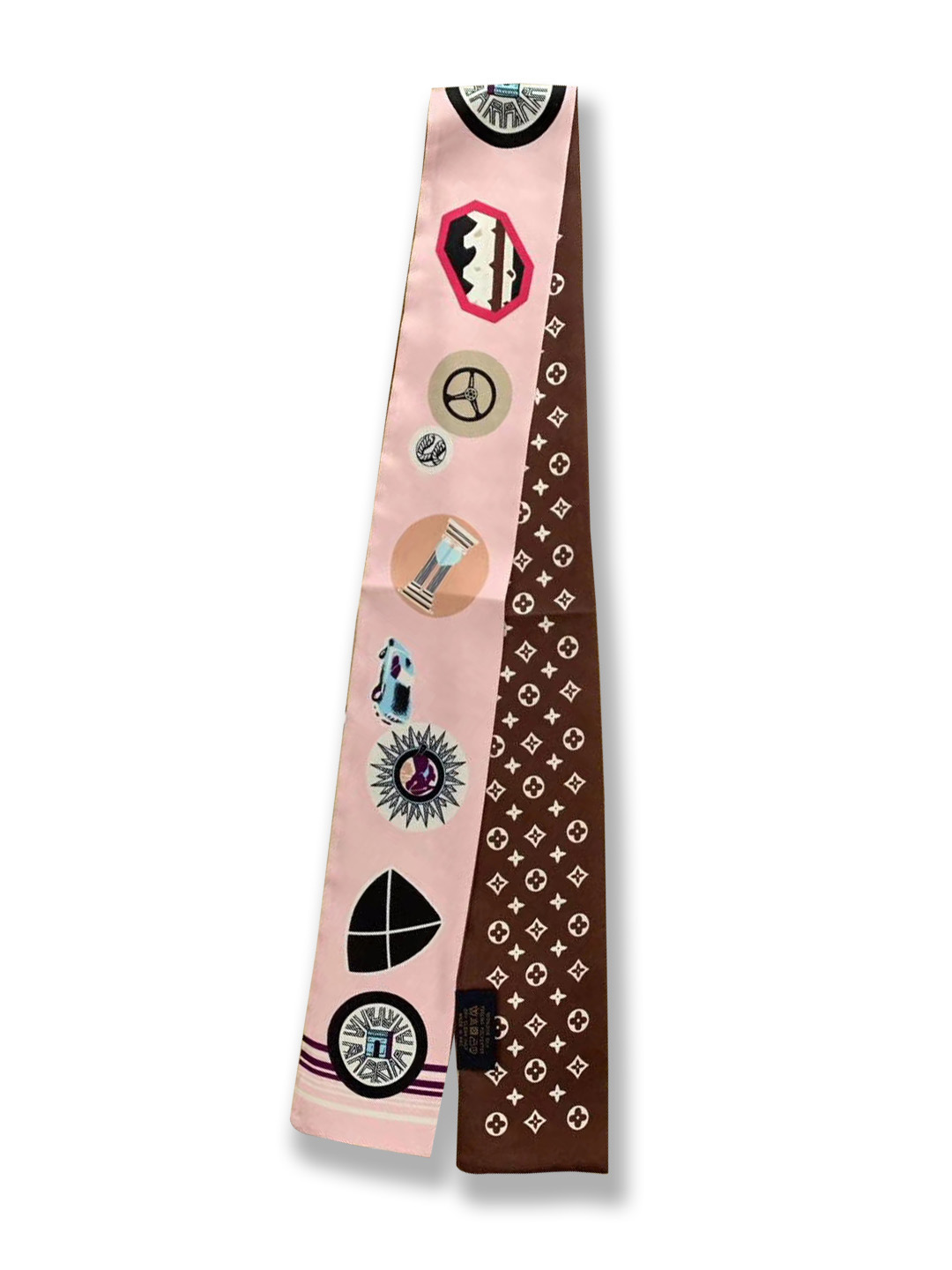 Ouyang Nana 체인 타이 백 실크 스카프 손잡이 장식 큰 브랜드 실크 스카프 작은 리본 헤어 벨트 다크 브라운 스카프 Presbyted 꽃