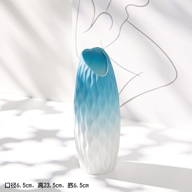 Shumen 블루 그라데이션 세라믹 말린 꽃병 창조적 인 간단한 북유럽 홈스테이 전시관 장식 물 모금 거실 장식품