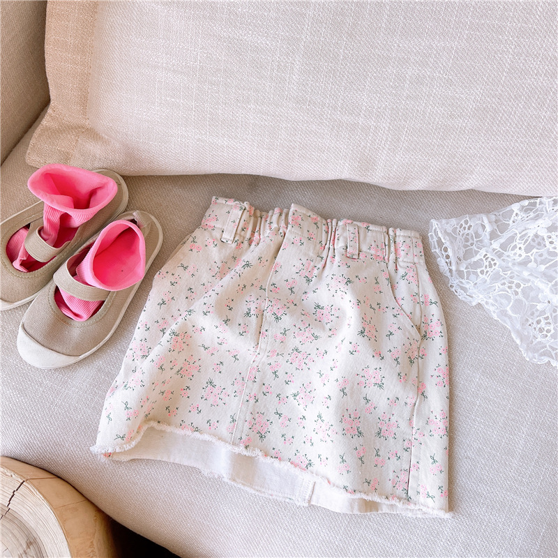 한국 아동복 여름 2025 신상 여아 한국식 꽃무늬 워싱 코튼 스커트 21215