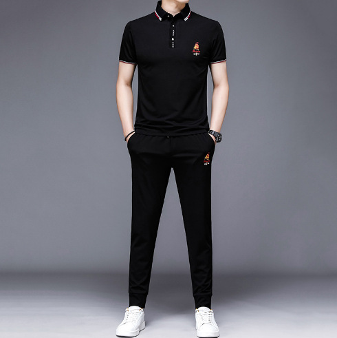 2024 여름 새로운 남성 캐주얼 세트 반팔 크루 넥 티셔츠 얇은 스포츠 바지 투피스 남성 패션