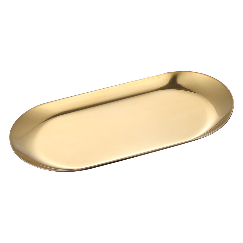 북유럽 간단한 스타일 스테인레스 스틸 황금 타원형 접시 보석 보관 작은 트레이 스테인레스 스틸 금속 보관 트레이