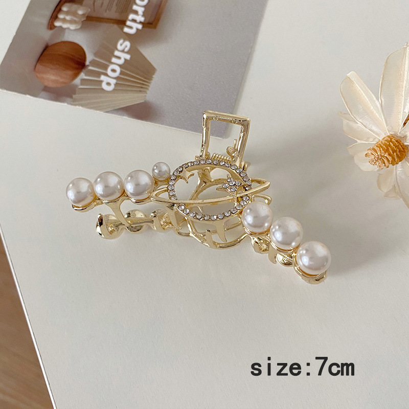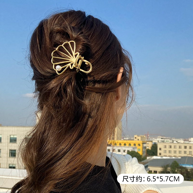 한국식 뒷머리 머리핀 여성용 활 펜던트 그랩 클립 진주 술 금속 상어 클립 디스크 헤어 클립 머리 장식스토어 가기