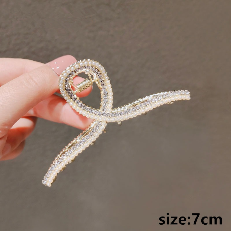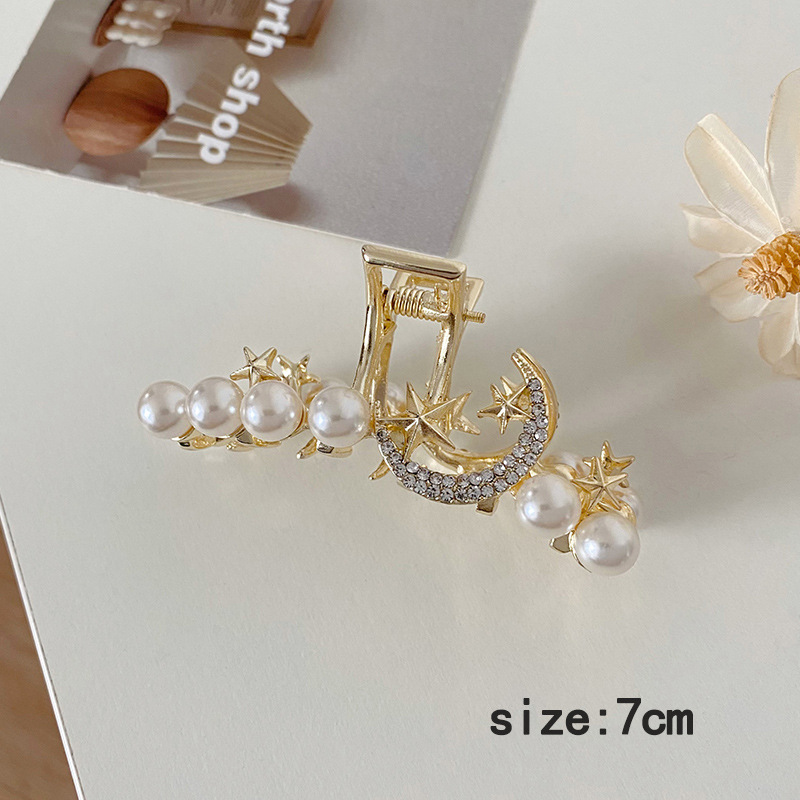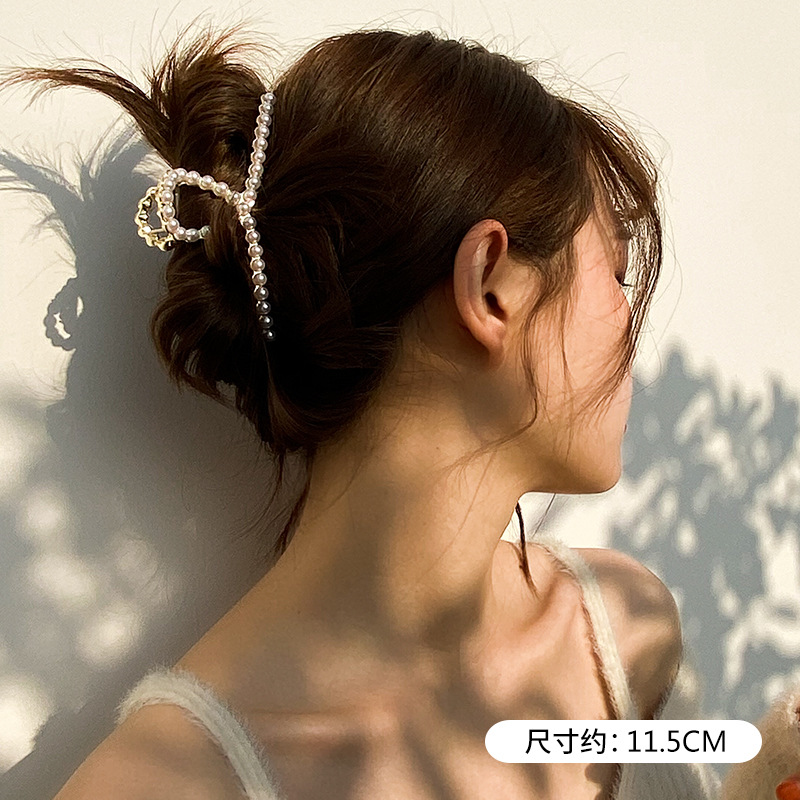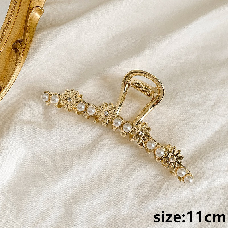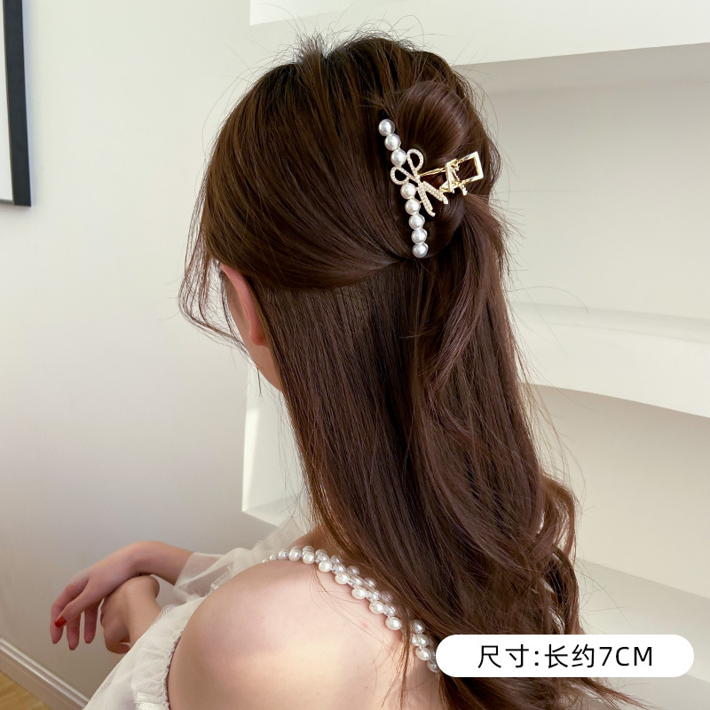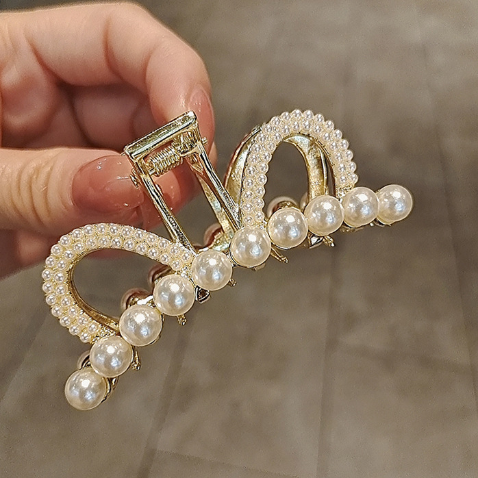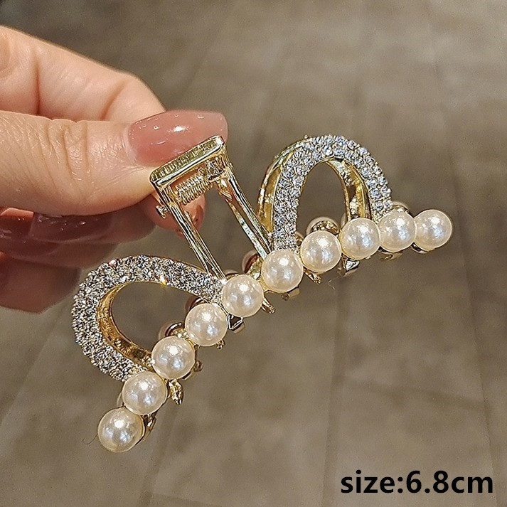 한국식 뒷머리 머리핀 여성용 활 펜던트 그랩 클립 진주 술 금속 상어 클립 디스크 헤어 클립 머리 장식