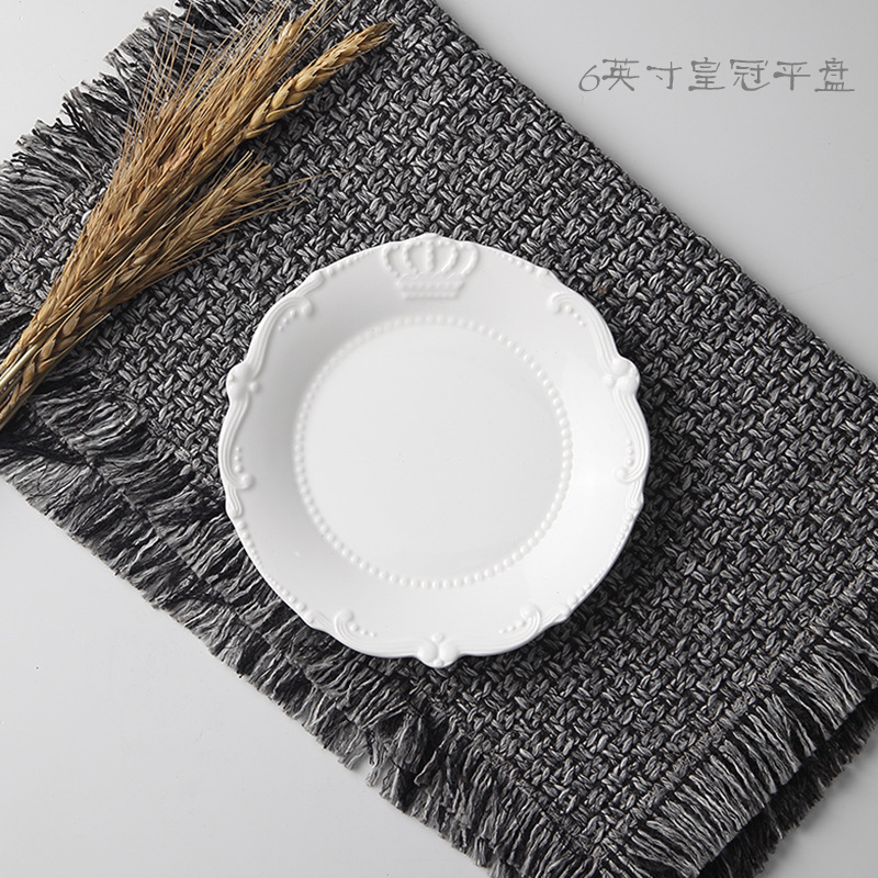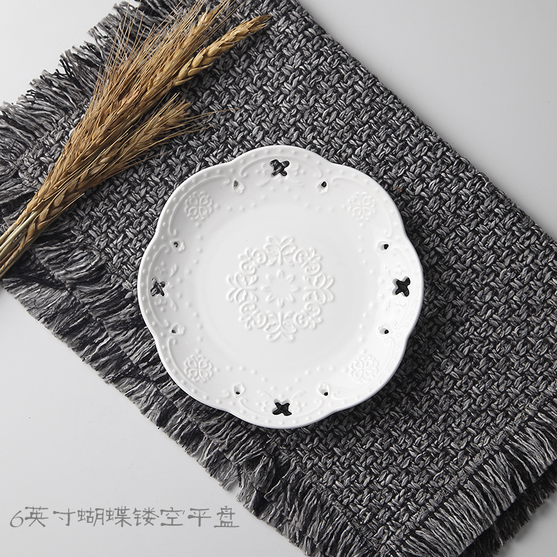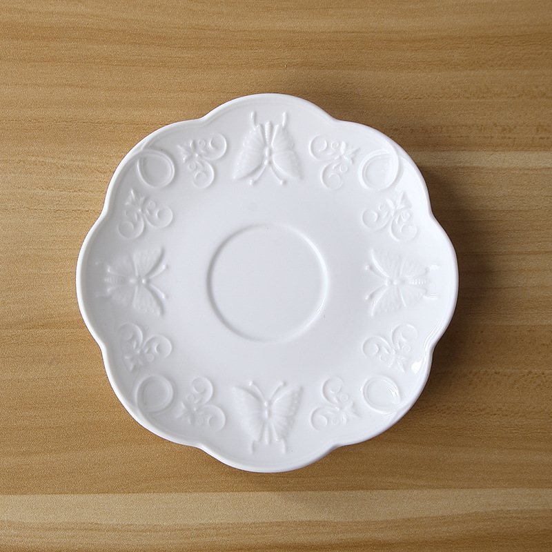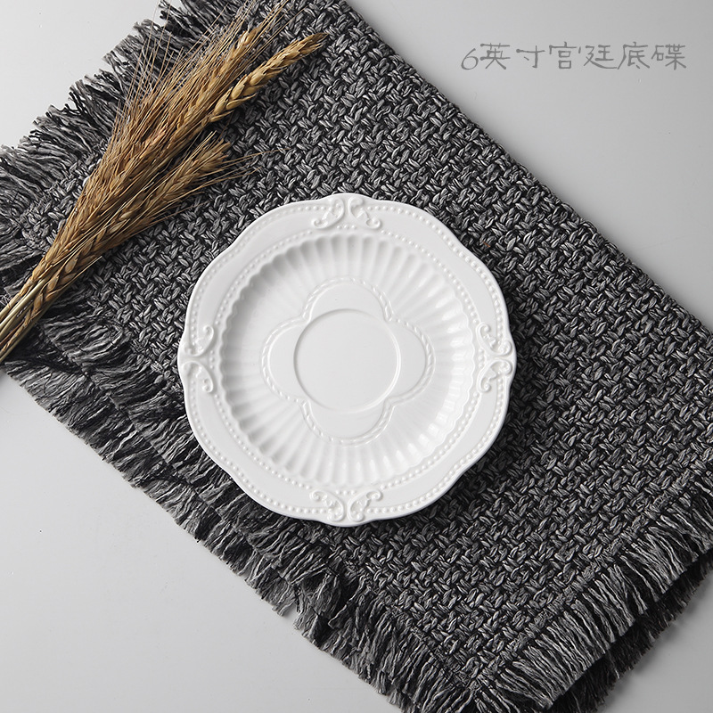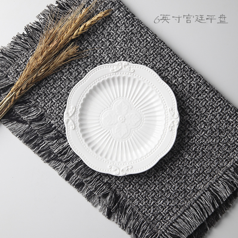 유럽식 양각 케이크 딤섬 접시 세라믹 6 인치 소형 접시 소형 디스크 평판 백자 접시 가정용