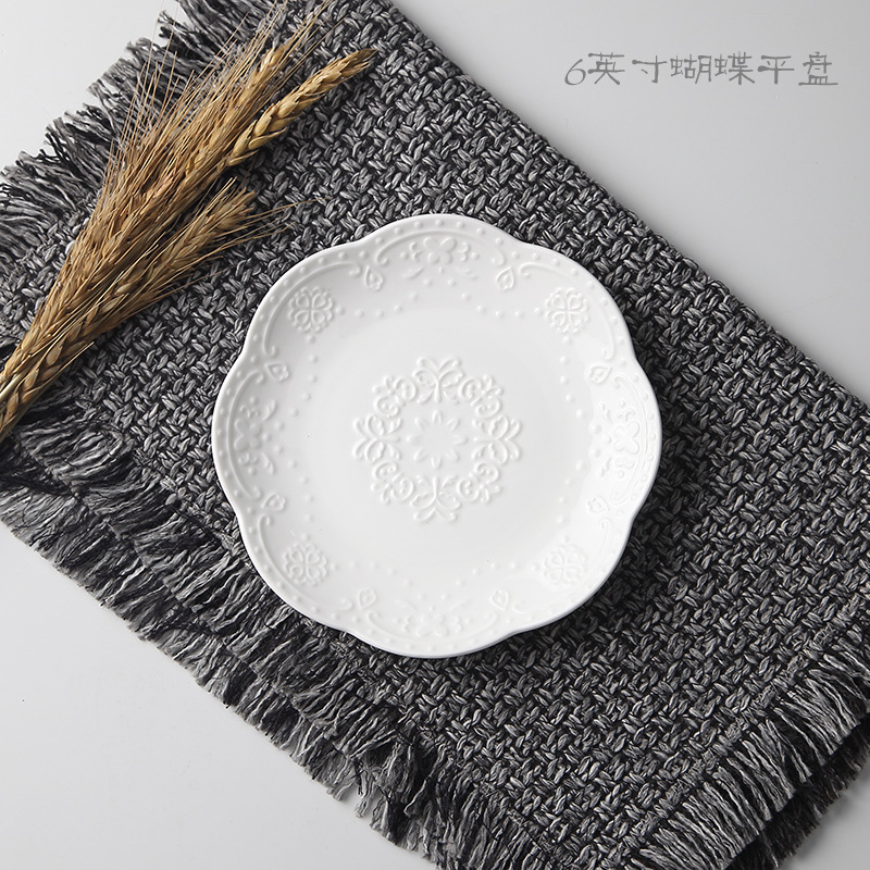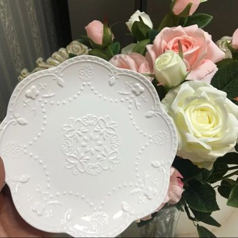 유럽식 양각 케이크 딤섬 접시 세라믹 6 인치 소형 접시 소형 디스크 평판 백자 접시 가정용스토어 가기