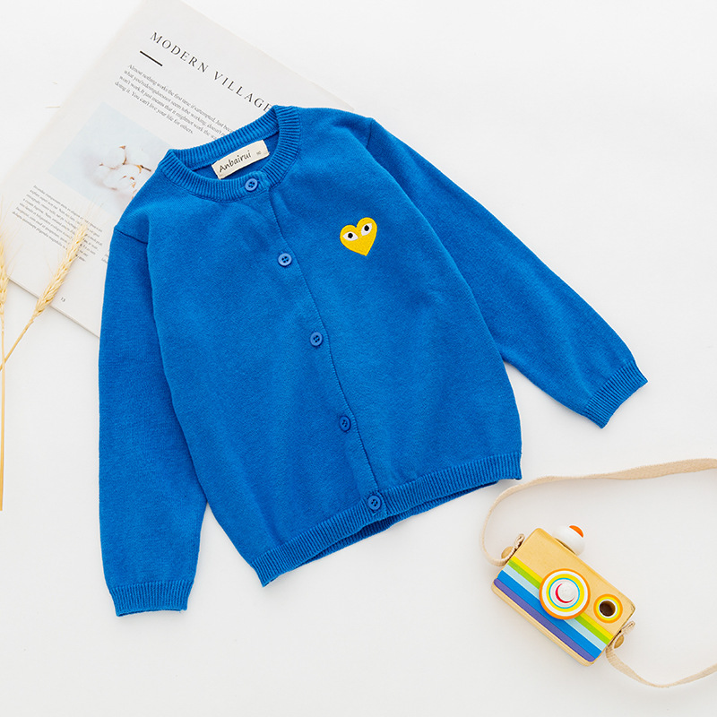 봄가을 아동용 가디건, 순면, 남녀공용, 니트 스웨터, 긴팔, 만화 자수, 유아동 및 부모와 같은 스타일스토어 가기