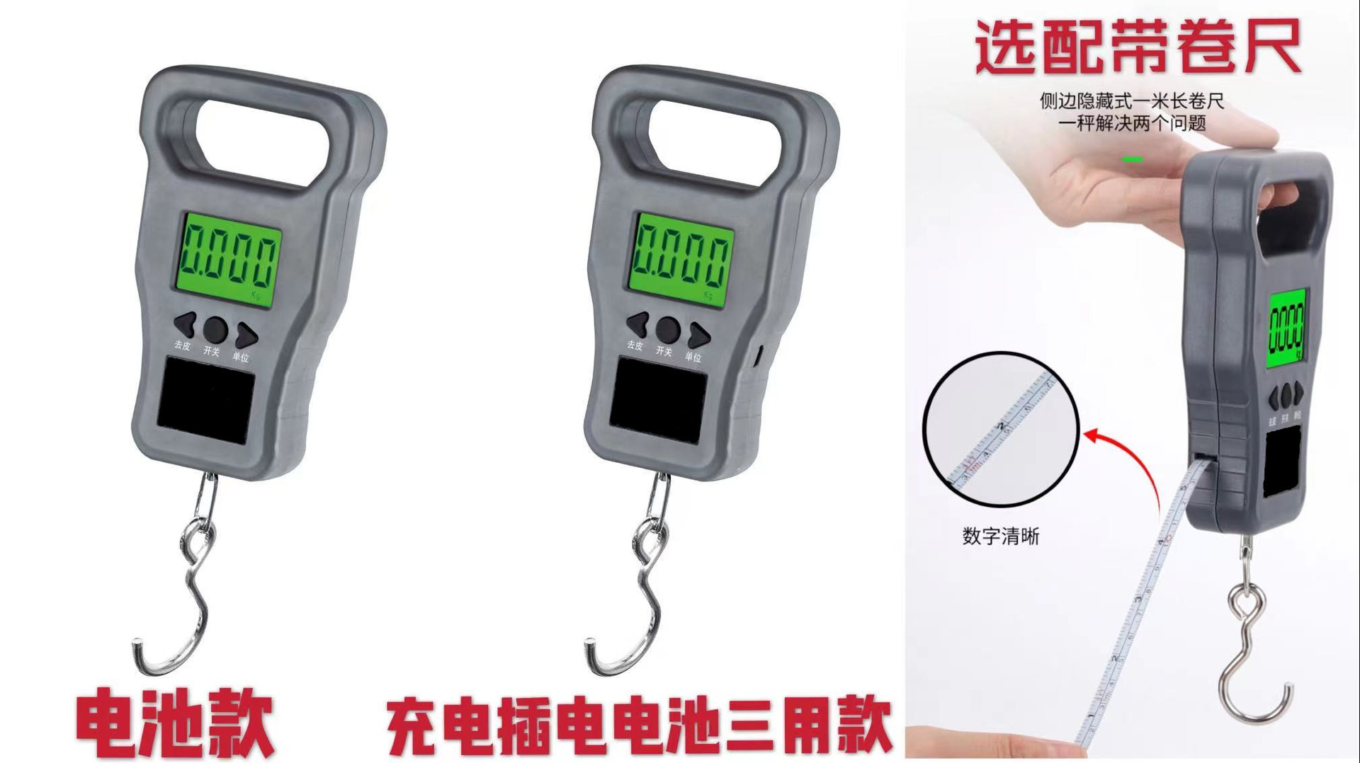 手提秤英文版中文版50kg室内室外吊钩称行李秤秤鱼防骗便携式勾称