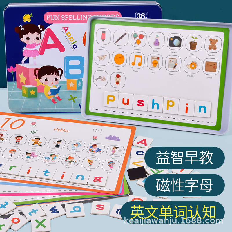 유치원 유치원 교육 장난감을 이해하는 국경 간 뜨거운 판매 단어 철자 퍼즐 게임 자기 영어 편지스토어 가기