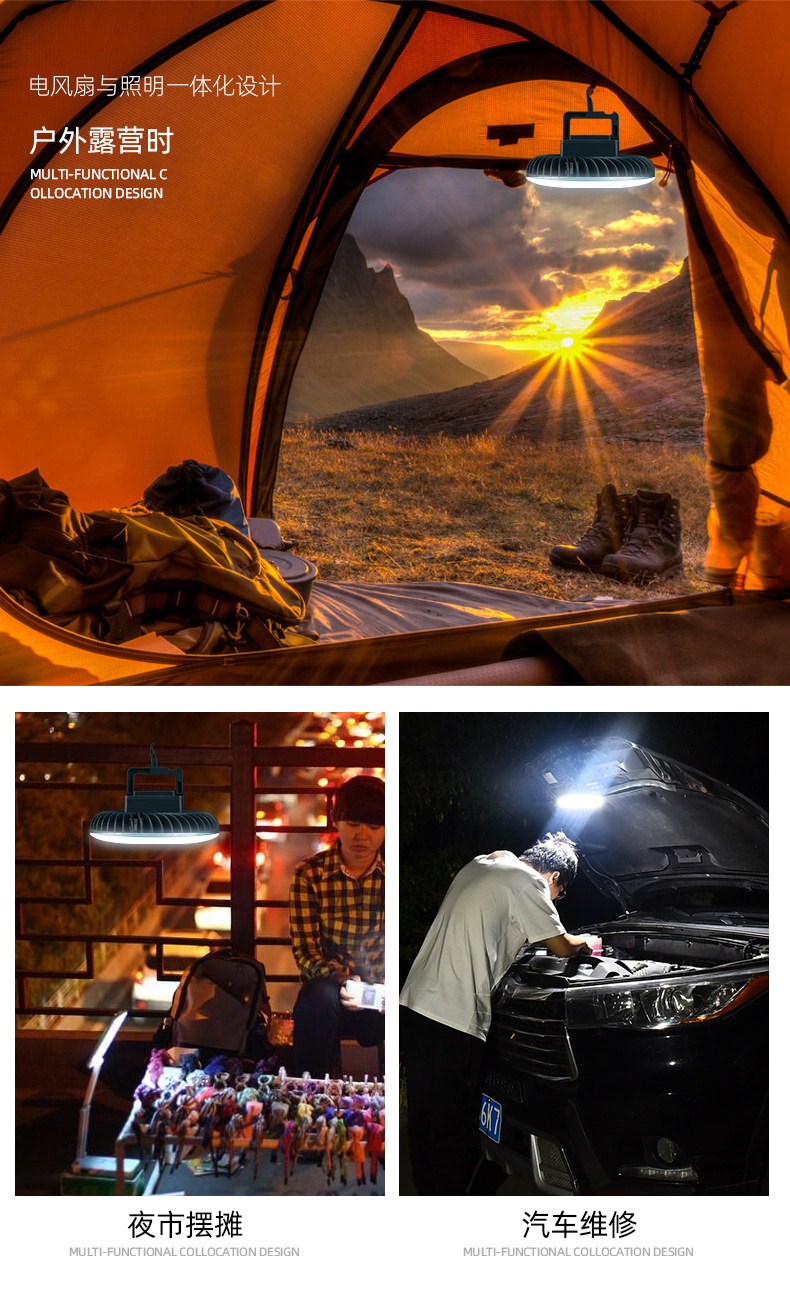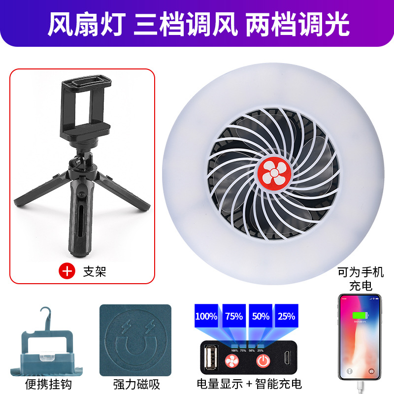 공장 판매 USB 충전식 팬 램프 테이블 램프 야외 라이브 조명 충전 휴대용 캠핑 조명 자석스토어 가기